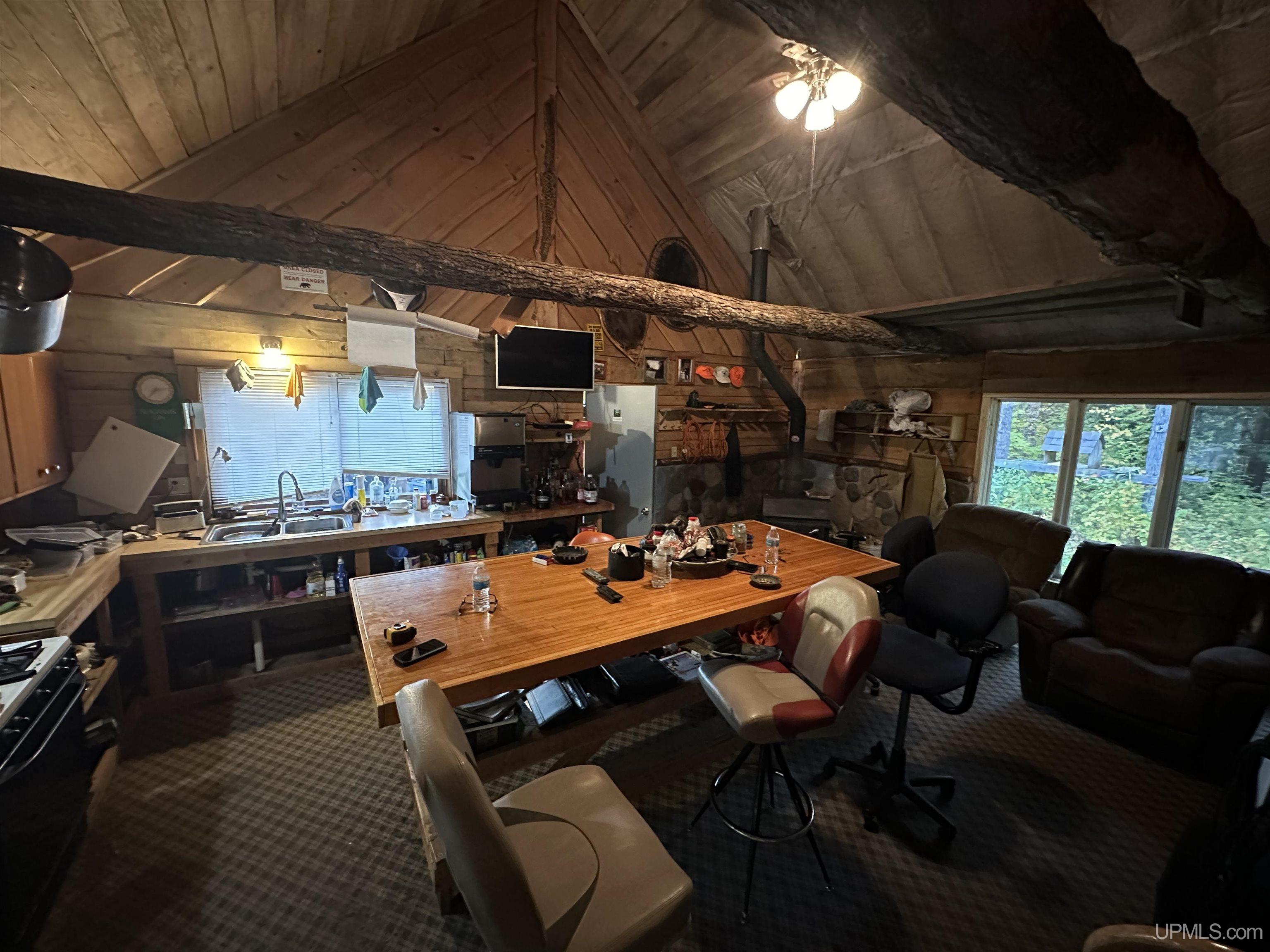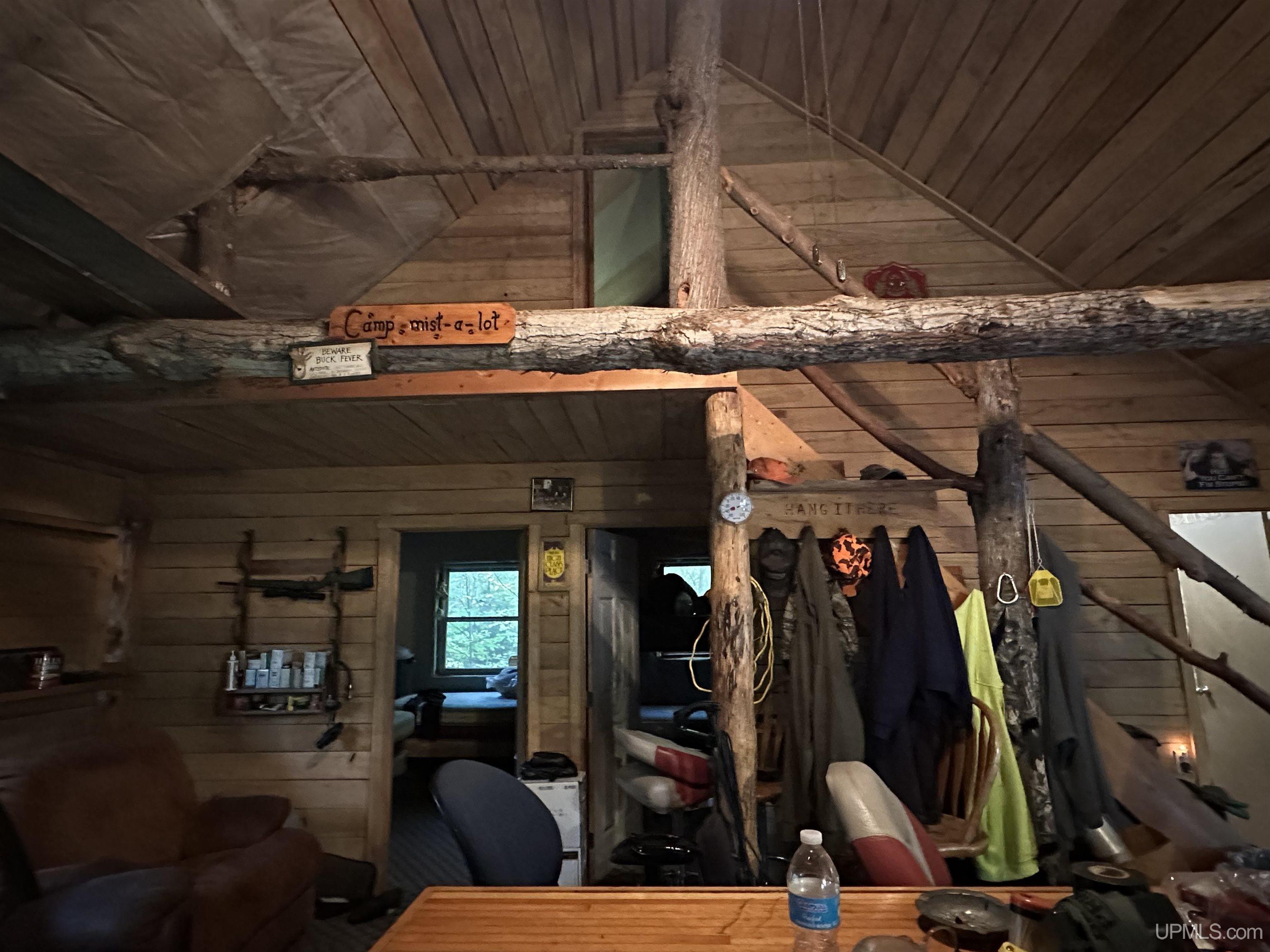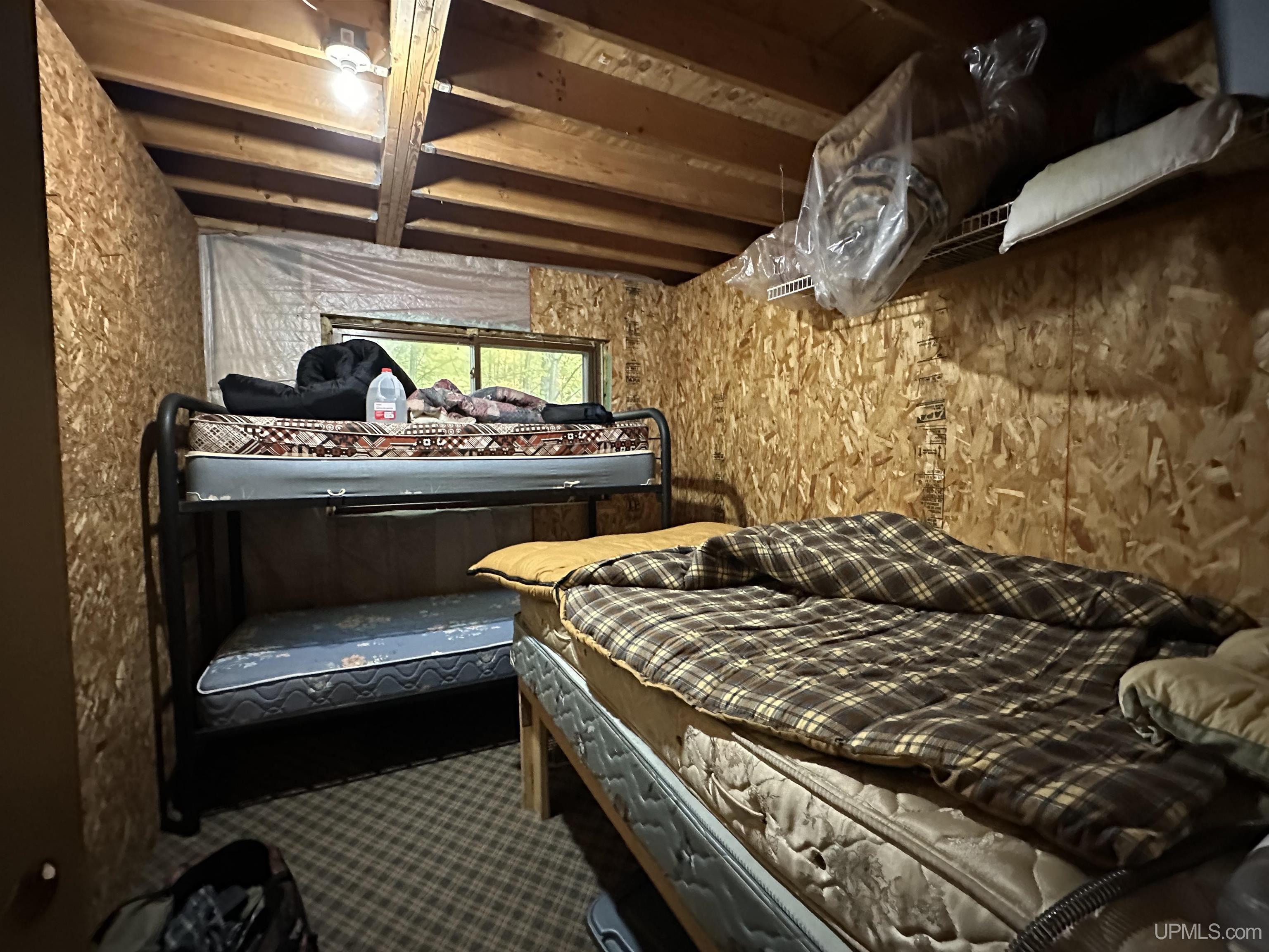 Wilderness Camp nestled in a serene natural setting. First time available, just ready and waiting for a new camp crew to enjoy. Built in 2000 and has some recent updates such as a full bathroom where you can even take a shower, the hot water tank operated via generator. Of course there is a privy if you prefer. Nice free standing wood burner keeps it cozy on the chilly nights. Two bedrooms down and a loft bedroom upstairs. Fully equipped kitchen with a hand made wood table that seats 8 comfortably. Rustic camp with some modern conveniences. Nice wood shed also has space for parking your ATV's under cover. Land has timber value as it hasn't been logged for 30 years. All high and dry acreage that is surrounded by state land. Your recreation possibilities are endless here. Road to camp comes right off the snowmobile trail. Go on an adventure and check this out!
