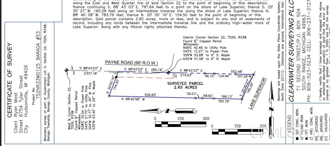 Enjoy Lake Superior! This Lake Superior property features approximately 160 feet of frontage on Keweenaw Bay, offering privacy, ample space, and expansive waterfront views in Baraga Township with convenient access to Highway US41. Located roughly 8 miles from Baraga and 20 miles from Houghton and Michigan Tech, the site provides accessibility to nearby towns while maintaining a secluded atmosphere along the shoreline. The property is a beautiful opportunity for constructing a residence or retreat to enjoy all aspects of Lake Superior living. Access to the property is via a two-track road leading to a clearing overlooking the lake. Progressing further, a there is a sandstone bluff that descends toward the water, passing several apple trees. A narrow walking trail follows the sandstone bluff near the shoreline affording expansive views of Keweenaw Bay. The land has some hardwoods and pines, complemented by scattered cedar and apple trees. Plenty of deer tracks have been observed and check out the photo of the Eagle viewed from this property! A rock fire pit, positioned near the lake’s edge, offers an opportunity to appreciate the natural surroundings, sounds and sunsets over Lake Superior. --------- NOTICE: All information believed accurate but not warranted. Buyer recommended to inspect & verify all aspects of the property & bears all risks for any inaccuracies including but not limited to estimated acreage, lot location/size, square footage, utilities (availability & costs associated). Real estate taxes are subject to change (possibly significant) & municipality reassessment after sale. Buyer should NOT assume that buyer’s tax bills will be similar to the seller’s current tax bills. OFFERS: 72 hours response time requested on offers. Seller, at seller's sole discretion, with or without notice, reserves the right to set and/or modify offer submission & response deadlines.