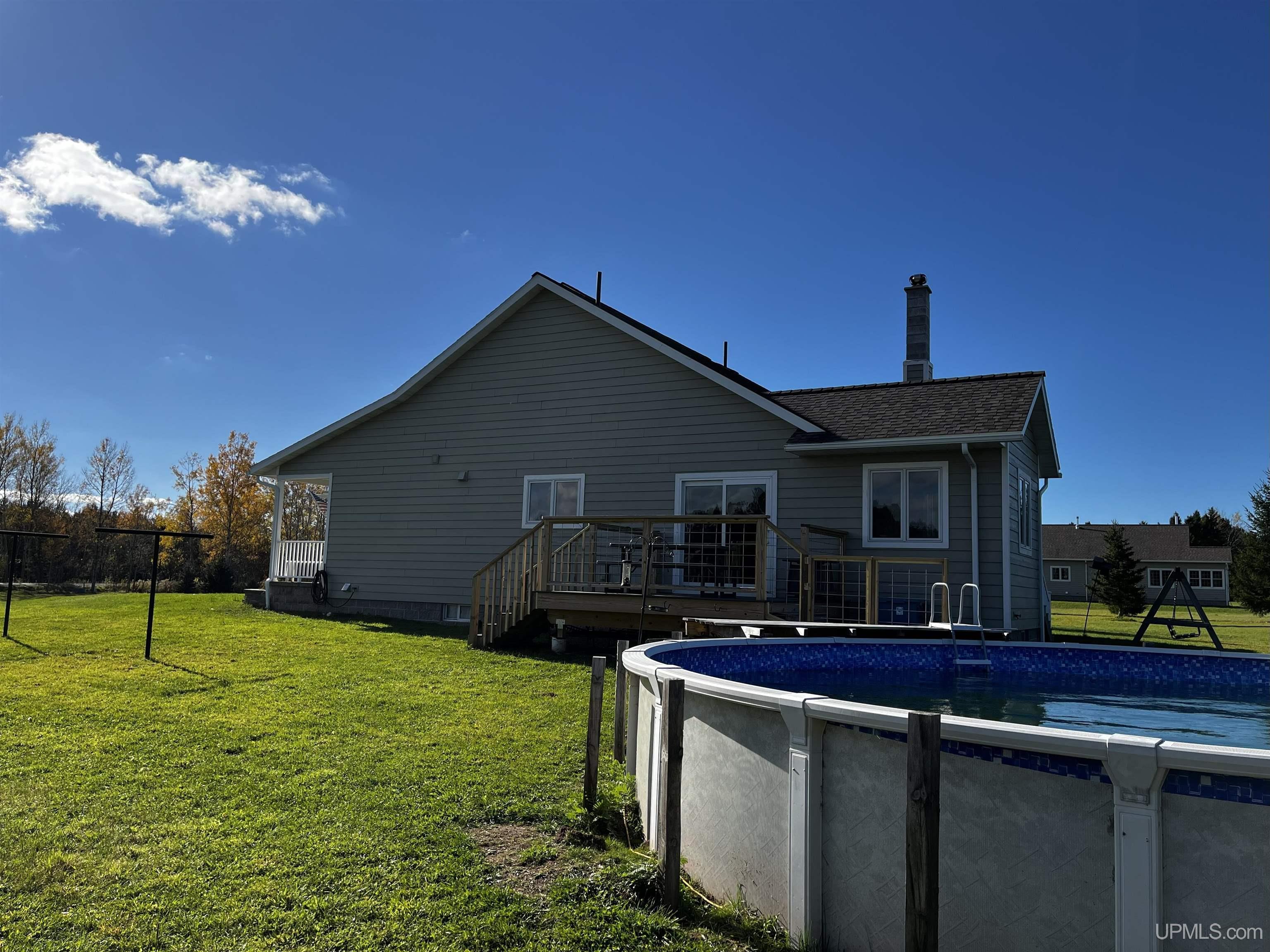 Wide Open Spaces! Beautiful and spacious 3BR 4 BA home with a 3-car garage located in desirable Stanton Township. The home on 10 acres with a large, open yard in a private setting close to Houghton. The home was built in 2006 and features a large kitchen and living room with a cathedral ceiling, great for entertaining family and friends. The kitchen features craftsman quality cabinetry with ample countertop space and seating, stainless-steel appliances, and a pantry. The kitchen has direct access to the large 12x12 deck for outdoor dining. The main level of the home includes the master bedroom suite with a jacuzzi tub and walk-in closet, guest bathroom, laundry room and large mud room access from the attached 3-car garage with extra deep bays to keep your vehicles and all your toys. The second floor has two bedrooms and a full bathroom. The basement is partially finished has a spacious family and rec room, bathroom, storage space, and the mechanical room. Outside the home features a pool, chicken coop, and additional storage shed. The location and privacy really define this home with proximity to Michigan Tech University, the area hospitals, Lake Superior beaches and all that the Keweenaw Peninsula has to offer. Don’t miss the opportunity to make this your new home.