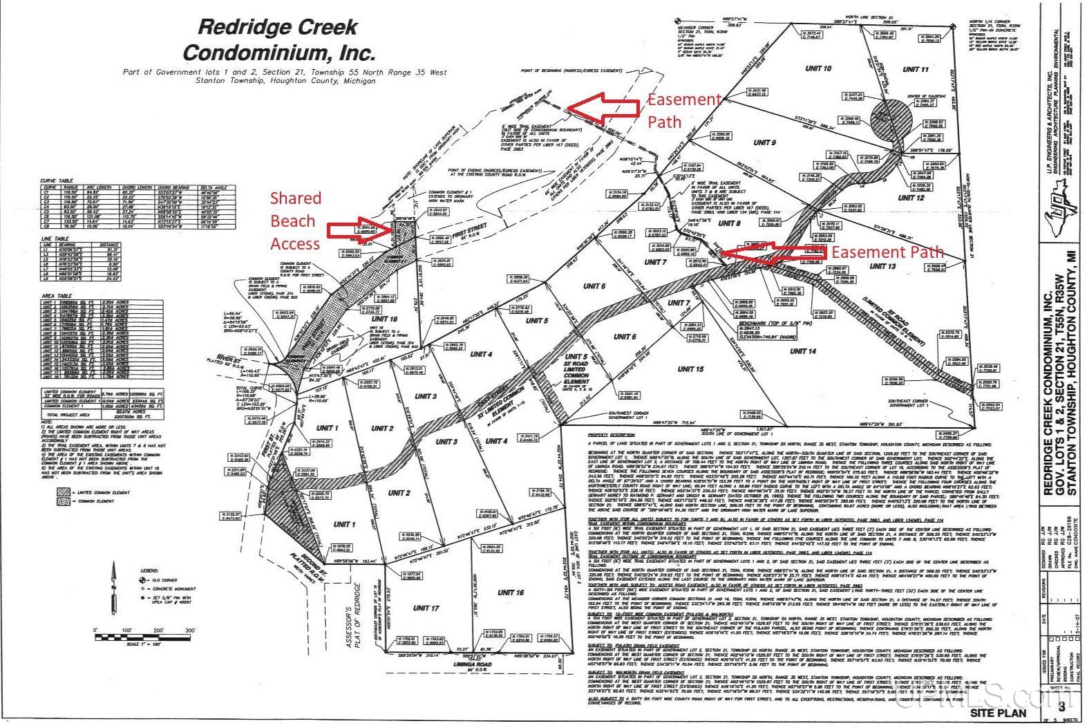 STANTON TOWNSHIP! This parcel is located in a special location with the potential of creating awesome views of Lake Superior on the building site! It also has a shared access waterfront lot where you can enjoy Lake Superior! The Redridge Creek community also has a shared private road and a trail that also connects you to the beach along Lake Superior. Unit 1 is approximate 2.5 acres with a clearing for the start of a building site that would make for a beautiful location to build your home or cottage. This lot has underground power available for connection and is located with frontage on both First St (public road, maintained by County) and Redridge Creek Road (private road maintained by association). The parcel is located only 12+/- miles from Michigan Tech and gives you the privacy you desire with an convenient commute to town. Local outdoor attractions include the Salmon Trout River, Redridge Dam and various recreational trails you can access in the area. Annual association dues are estimated to be $250 per year plus an additional annual snow removal assessment which for 2023/24 was $21.00 for the seller (dues and assessments are subject to change). NOTICE: All information believed accurate but not warranted. Buyer recommended to inspect & verify all aspects of the property & bares all risks for any inaccuracies including but not limited to estimated acreage, lot location/size, square footage, utilities (availability & costs associated). Real estate taxes are subject to change (possibly significant) & municipality reassessment after sale. Buyer should NOT assume that buyer’s tax bills will be similar to the seller’s current tax bills. Taxes are not zero. Audio/video recording devices may be present on property and entering the property shall be considered consent to be recorded. OFFERS: 72 hours response time requested on offers. Seller, at seller's sole discretion, with or without notice, reserves the right to set and/or modify offer submission & response deadlines. Photos: Some photos are of general area and common/shared beach area. Photo showing map is an approximation, not a survey.