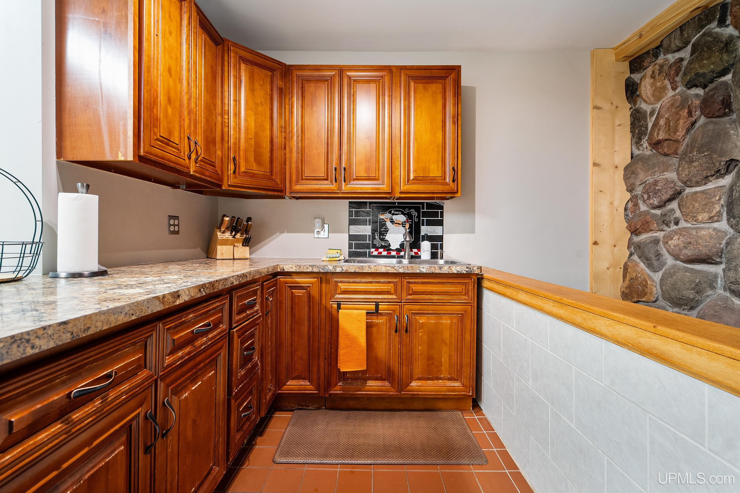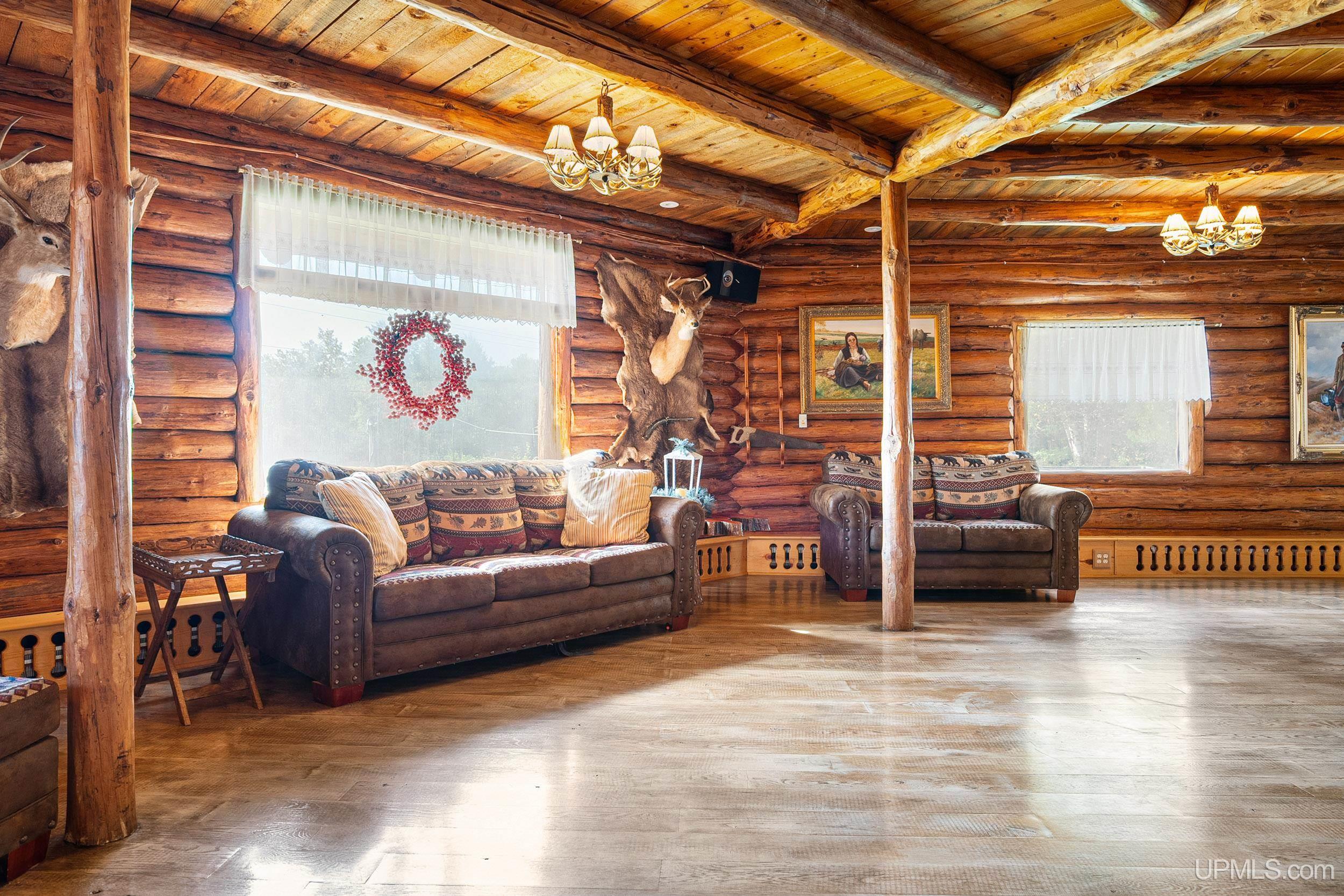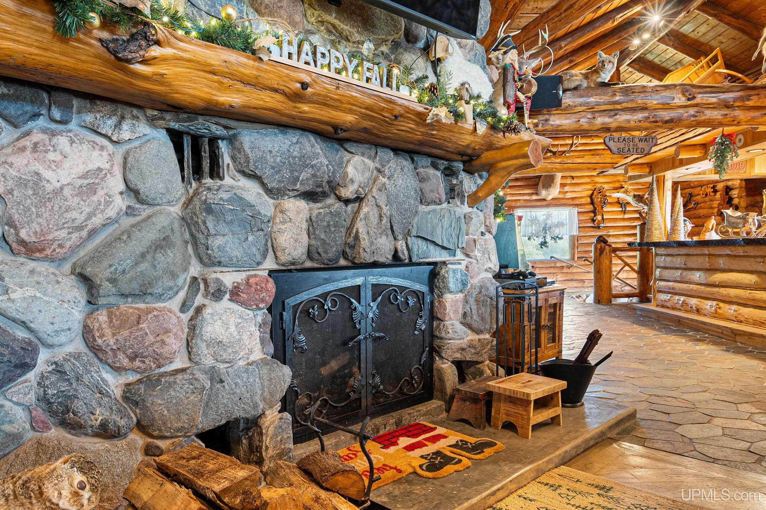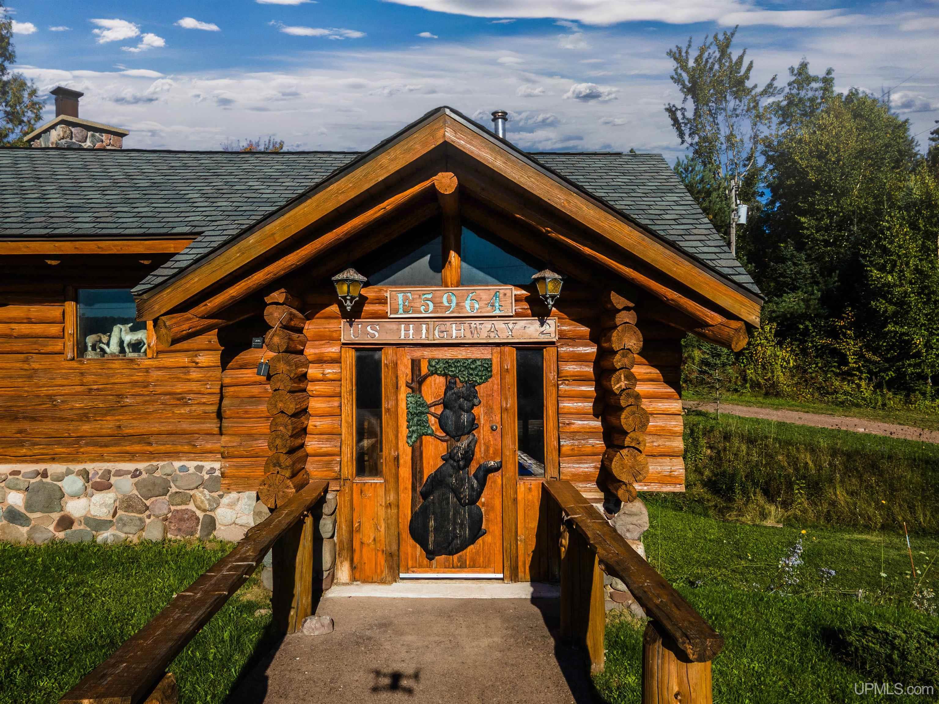 Incredible full log home with Acreage, Pond, and rental income with prime high traffic location! This 7000+ sq ft treasure is just waiting to be found. The renovations and improvements exceed the asking price. The unit also comes fully furnished with exquisite decor, wood carvings, and artwork. There are bars on both levels with a grand dining area on the main floor where you will find the massive stone fireplace. You'll also find a full kitchen and 2bathrooms. An impressive log staircase leads to the loft area overlooking the main floor. The lower level offers it's own fireplace ,another bar, sauna, and 3 bedrooms. The home has been a successful rental property for the last 2 years, but could be utilized as a restaurant, business, or whatever your imagination can dream. The highway location combined with the Acreage and proximity to ski hills, snowmobile and ORV trails, Lake Superior, world famous Copper Peak ski jump, and much more provide endless possibility. Come take a look at this unique gem before it's gone!