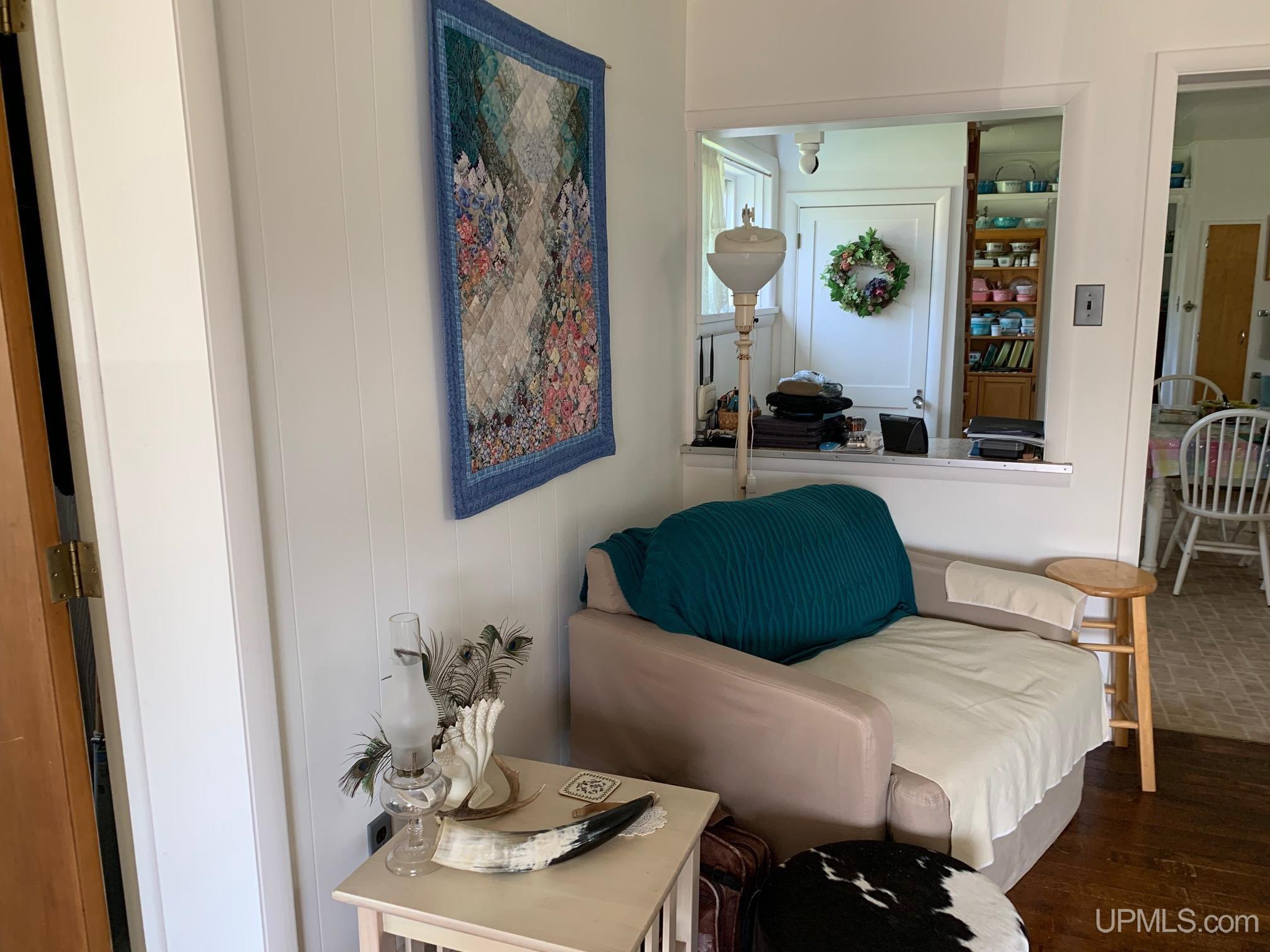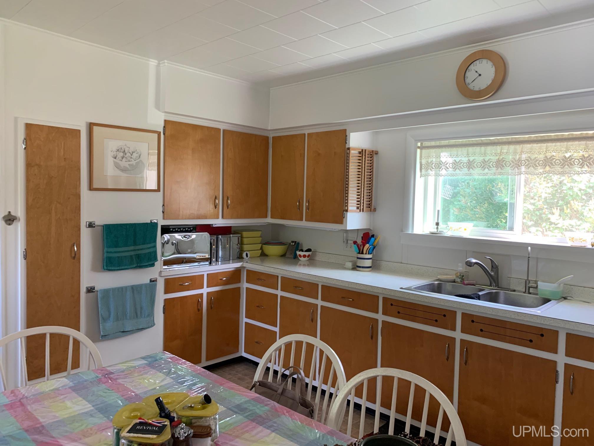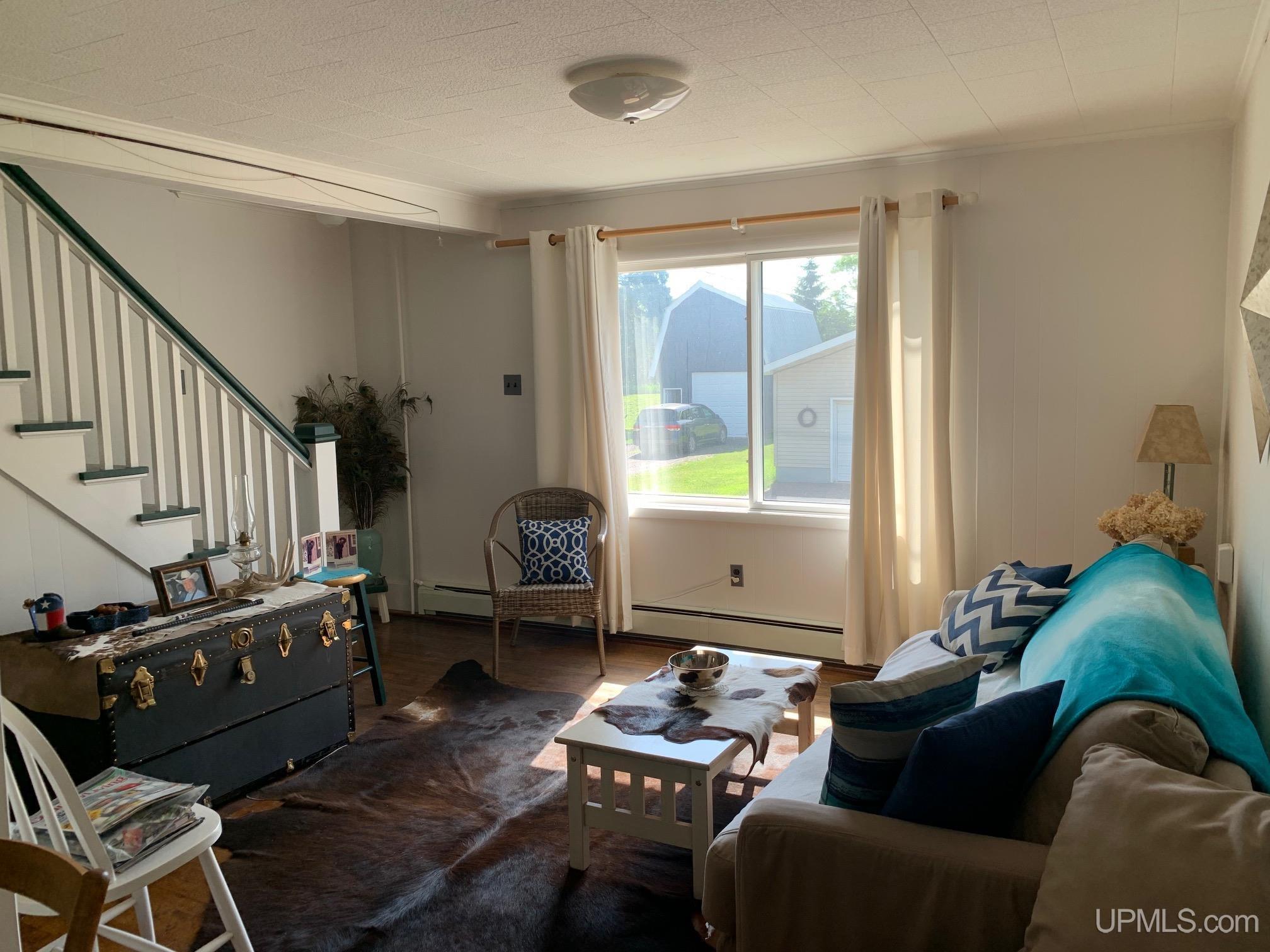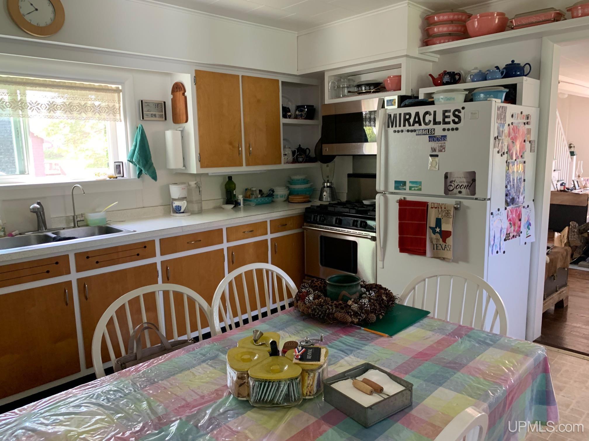 Turn key house on a quiet street in Calumet! The home sits on two lots, and a two car garage is situated on a third lot across the street from the house! There are three bedrooms (one bedroom is currently being used as a sewing/craft room). If you've wished for a large kitchen-you found it! Plenty of cabinet space, a pantry and extra storage everywhere! The front entrance doubles as a four seasons sitting room/porch. A spacious family room has a wood stove if you wish to use it. Very cozy for our cold UP winters! There is plenty of room in both the basement and garage for a 'man cave'. Gardeners will be happy with whatever size garden they would like to have. Also, no fears about running out of room to put your snow in the winter- normally a problem in town. The second lot cannot be built on. A city gas line goes through it. The roof and furnace were replaced in 2014. The windows are new/newer. Come on in and relax! Home is being sold 'As Is'. Taxes will not be zero. Allow 72 hours minimum response time on offers.