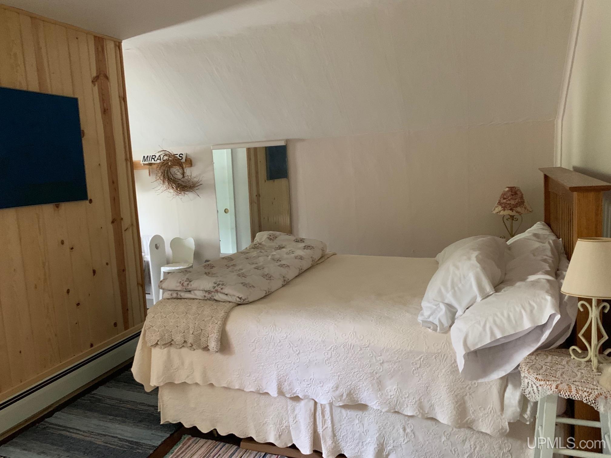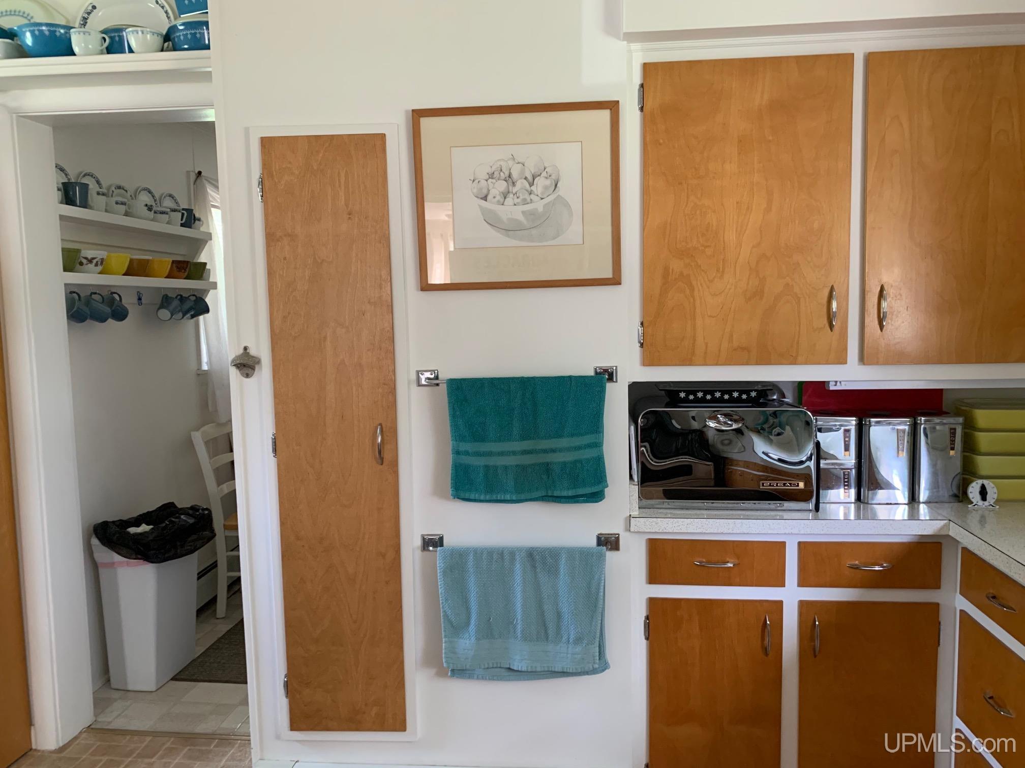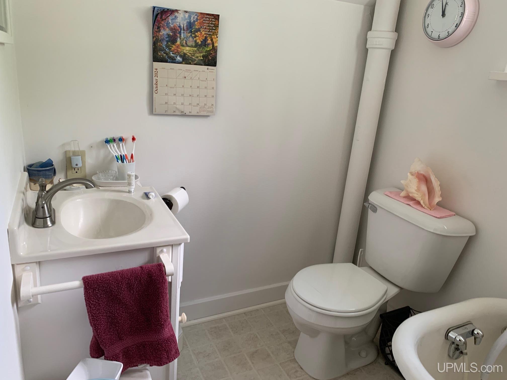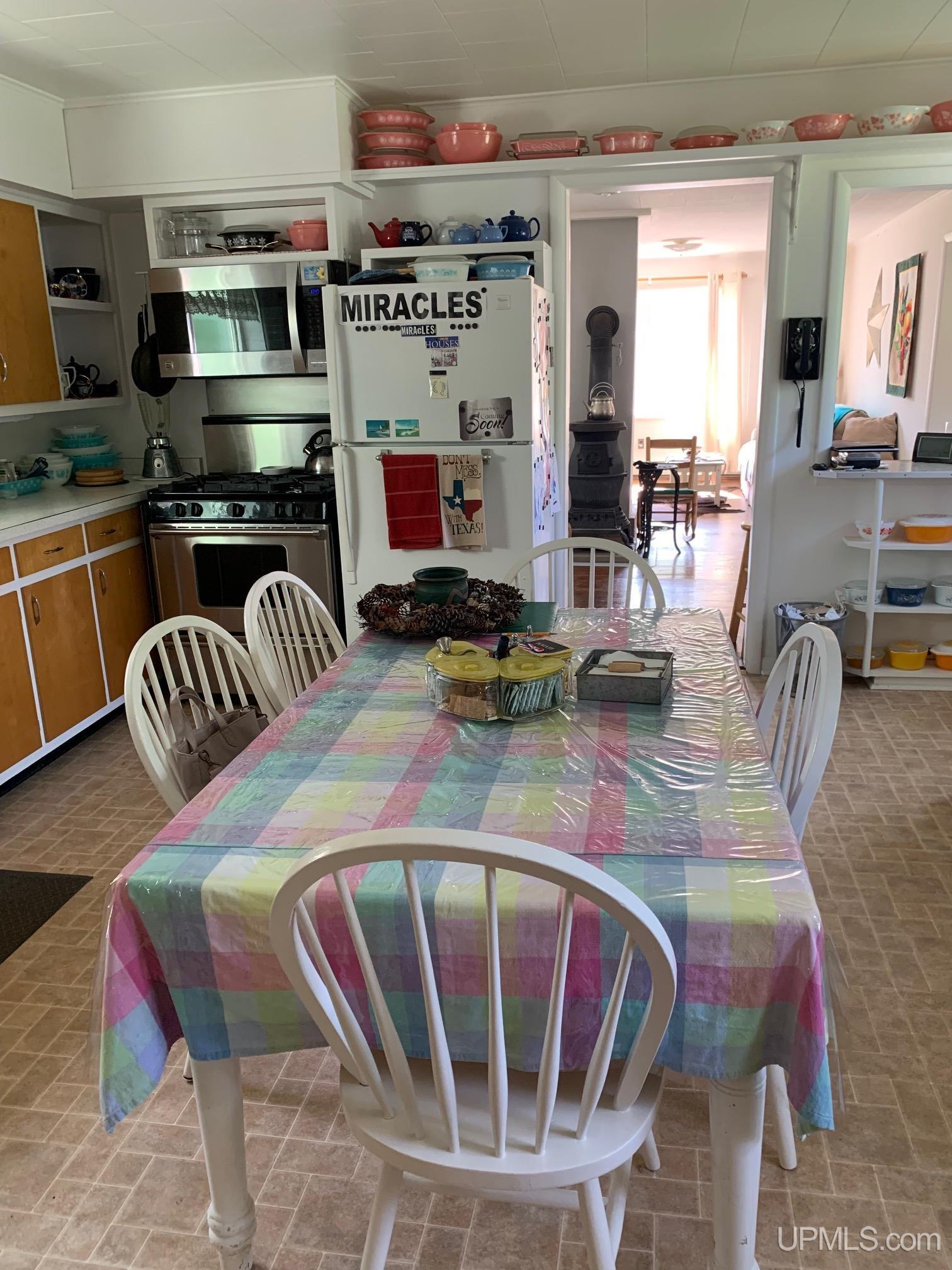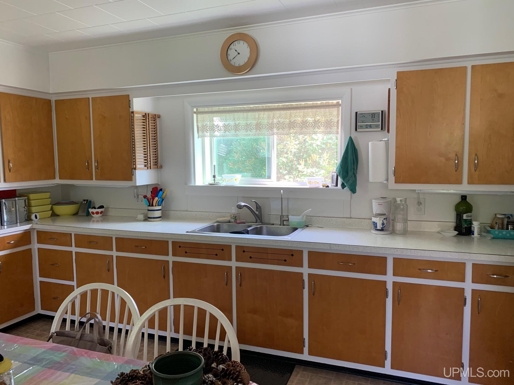 Turn key house on a quiet street in Calumet! The home sits on two lots, and a two car garage is situated on a third lot across the street from the house! There are three bedrooms (one bedroom is currently being used as a sewing/craft room). If you've wished for a large kitchen-you found it! Plenty of cabinet space, a pantry and extra storage everywhere! The front entrance doubles as a four seasons sitting room/porch. A spacious family room has a wood stove if you wish to use it. Very cozy for our cold UP winters! There is plenty of room in both the basement and garage for a 'man cave'. Gardeners will be happy with whatever size garden they would like to have. Also, no fears about running out of room to put your snow in the winter- normally a problem in town. The second lot cannot be built on. A city gas line goes through it. The roof and furnace were replaced in 2014. The windows are new/newer. Come on in and relax! Home is being sold 'As Is'. Taxes will not be zero. Allow 72 hours minimum response time on offers.