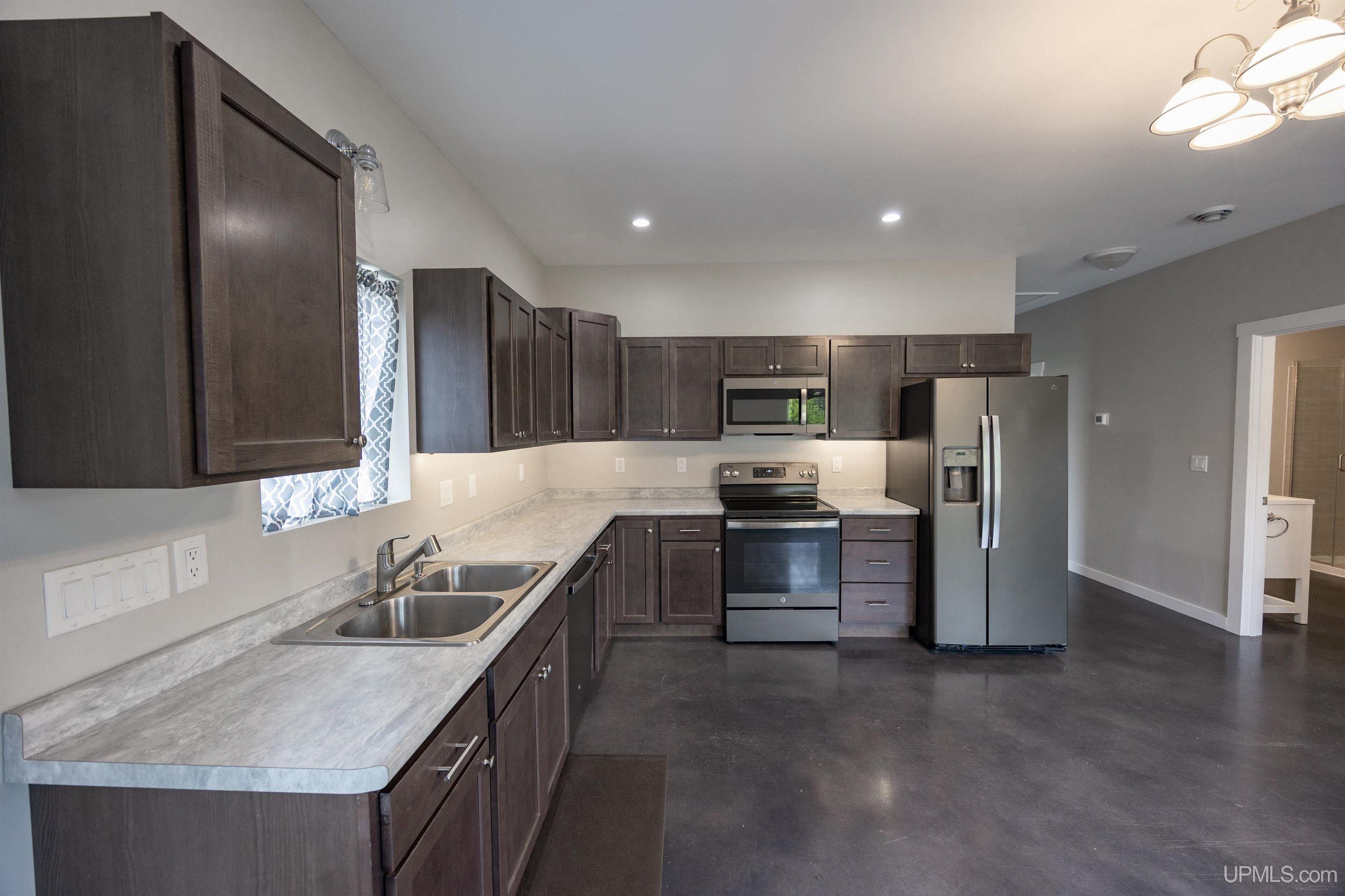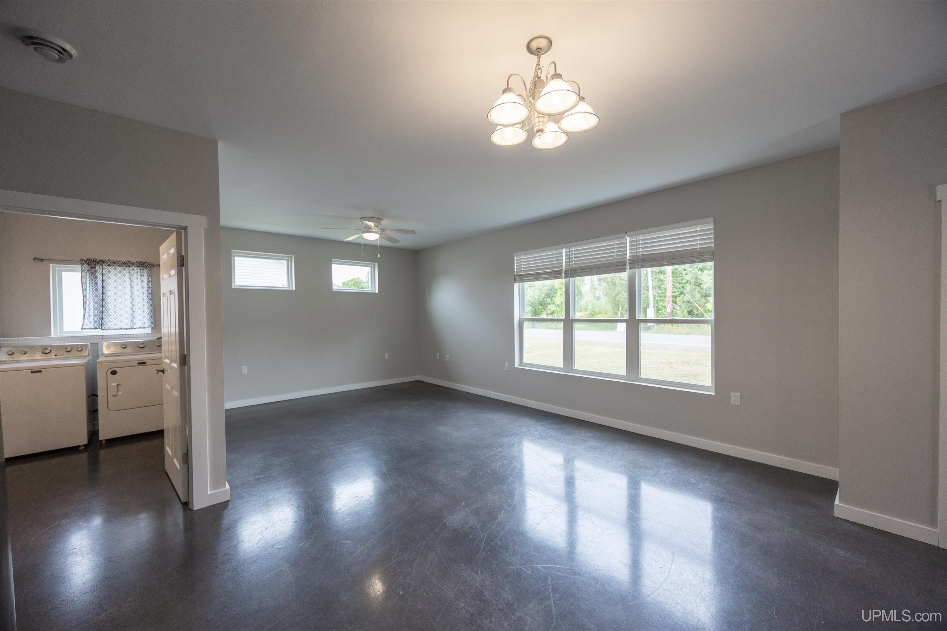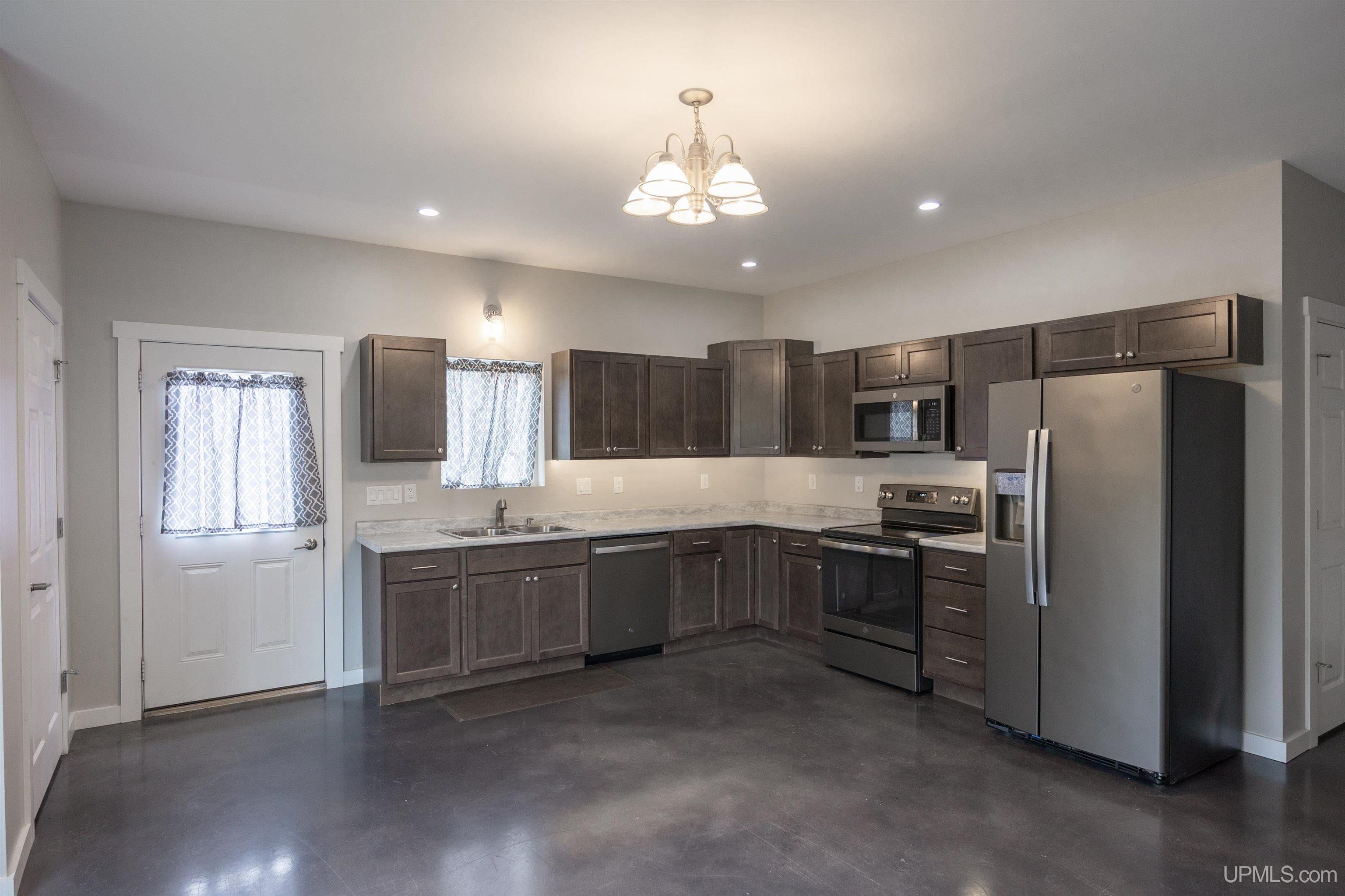 AVAILABLE NOW! - ATLANTIC MINE, approximate 4+/- miles from Houghton! This 2 bedroom, 1 bathroom home has 1008+/- sq feet of living space with open kitchen, dining area and living room. Other features include appliances (washer, dryer, dishwasher, refrigerator, microwave, oven/range), polished concrete floors, walk-in shower and storage building (exterior dimensions 16x20+/-, interior dimensions 15.5x19.5+/-). 1 year lease required. Utilities included: Water/sewer (up to $100/mth total), trash pickup & snow removal included. Tenant pay any water/sewer over $100/mth). Tenant responsible for gas and electric. Landlord may consider a pet. Pet request must be presented with application. No smoking. Application required. NOTICE: All information believed accurate but not warranted. Tenant recommended to inspect & verify all aspects of the property & bares all risks for any inaccuracies including but not limited to estimated acreage, lot location/size, square footage, utilities (availability & costs associated). APPLICATIONS: Landlord at landlord's sole discretion, with or without notice, reserves the right to set and/or modify application submission & response deadlines.