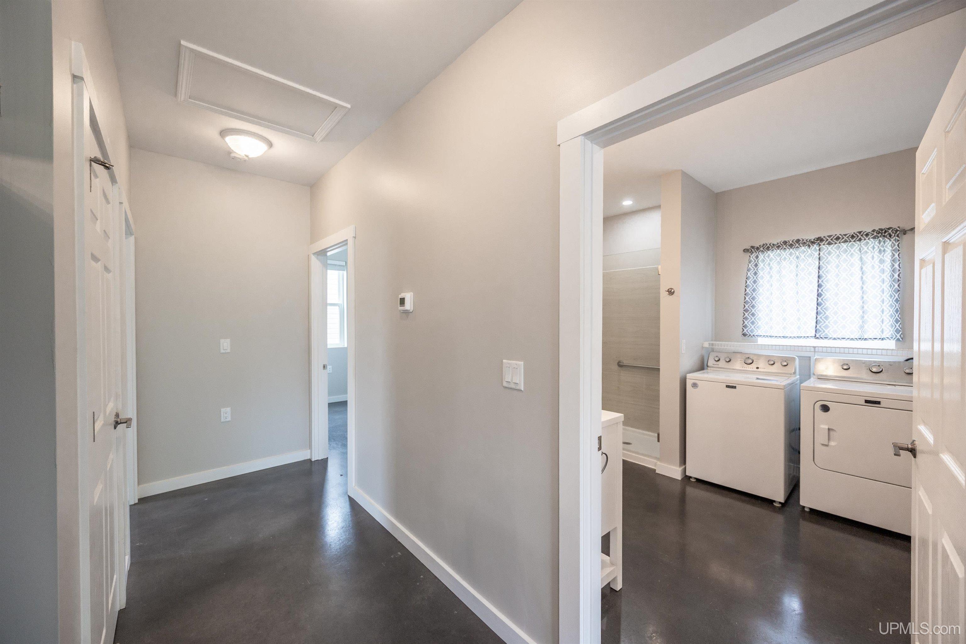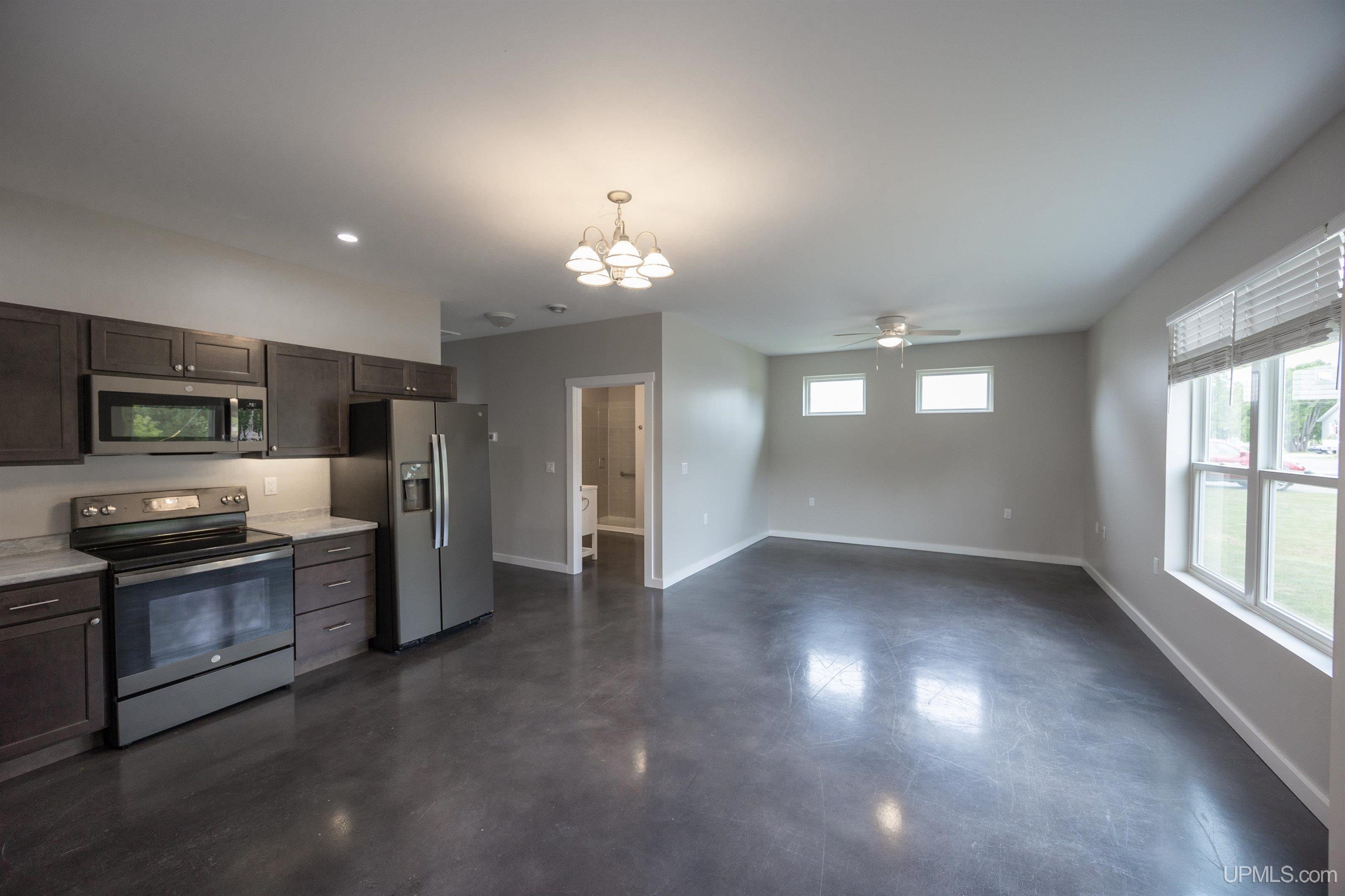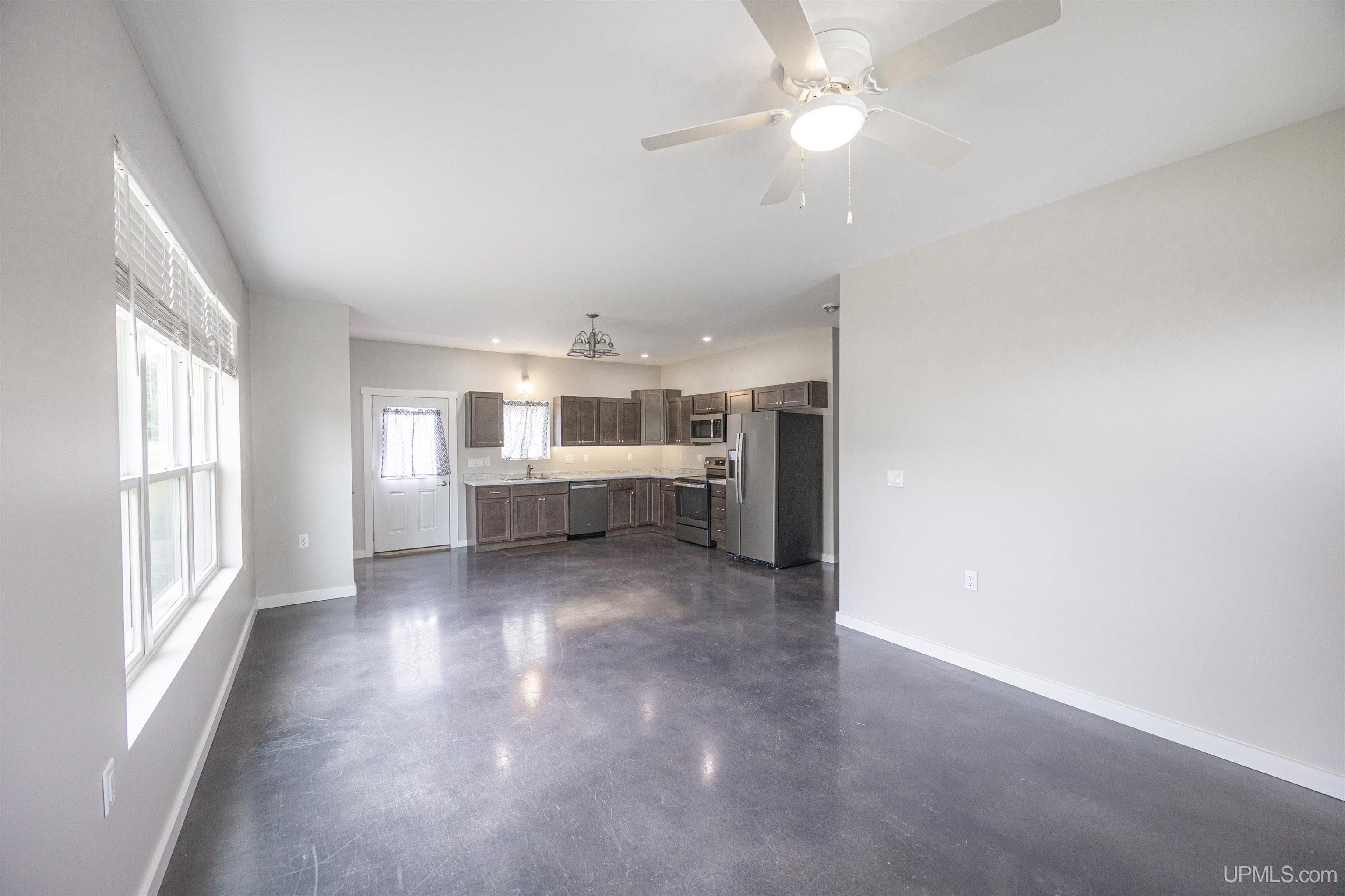 AVAILABLE NOW! - ATLANTIC MINE, approximate 4+/- miles from Houghton! This 2 bedroom, 1 bathroom home has 1008+/- sq feet of living space with open kitchen, dining area and living room. Other features include appliances (washer, dryer, dishwasher, refrigerator, microwave, oven/range), polished concrete floors, walk-in shower and storage building (exterior dimensions 16x20+/-, interior dimensions 15.5x19.5+/-). 1 year lease required. Utilities included: Water/sewer (up to $100/mth total), trash pickup & snow removal included. Tenant pay any water/sewer over $100/mth). Tenant responsible for gas and electric. Landlord may consider a pet. Pet request must be presented with application. No smoking. Application required. NOTICE: All information believed accurate but not warranted. Tenant recommended to inspect & verify all aspects of the property & bares all risks for any inaccuracies including but not limited to estimated acreage, lot location/size, square footage, utilities (availability & costs associated). APPLICATIONS: Landlord at landlord's sole discretion, with or without notice, reserves the right to set and/or modify application submission & response deadlines.