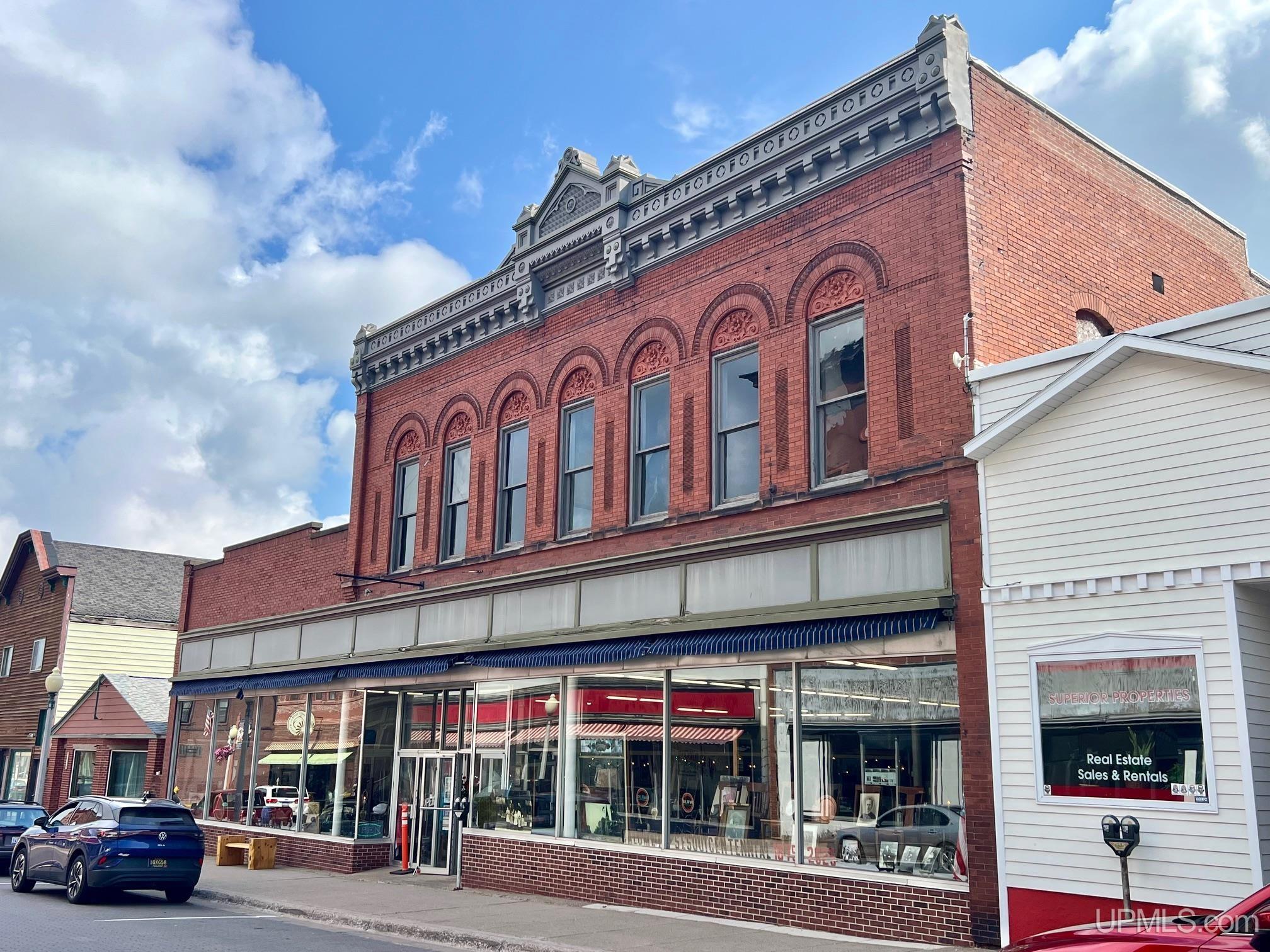 Price reduced to $118,500! High exposure commercial building with retail / gallery space in downtown Calumet. Prestigious building with full commercial storefront windows and open retail space. Ground level retail access from Fifth Street plus rear access from Fourth Street on-site parking. Building includes 6,000 square feet of retail area plus heated delivery space with storage, accessible from the property's Fourth Street parking area. 3,750 square feet of second story area for additional storage or renovation to apartment and office space. See renovation plans in associated documents. The best investment opportunity in the heart of historic Red Jacket.