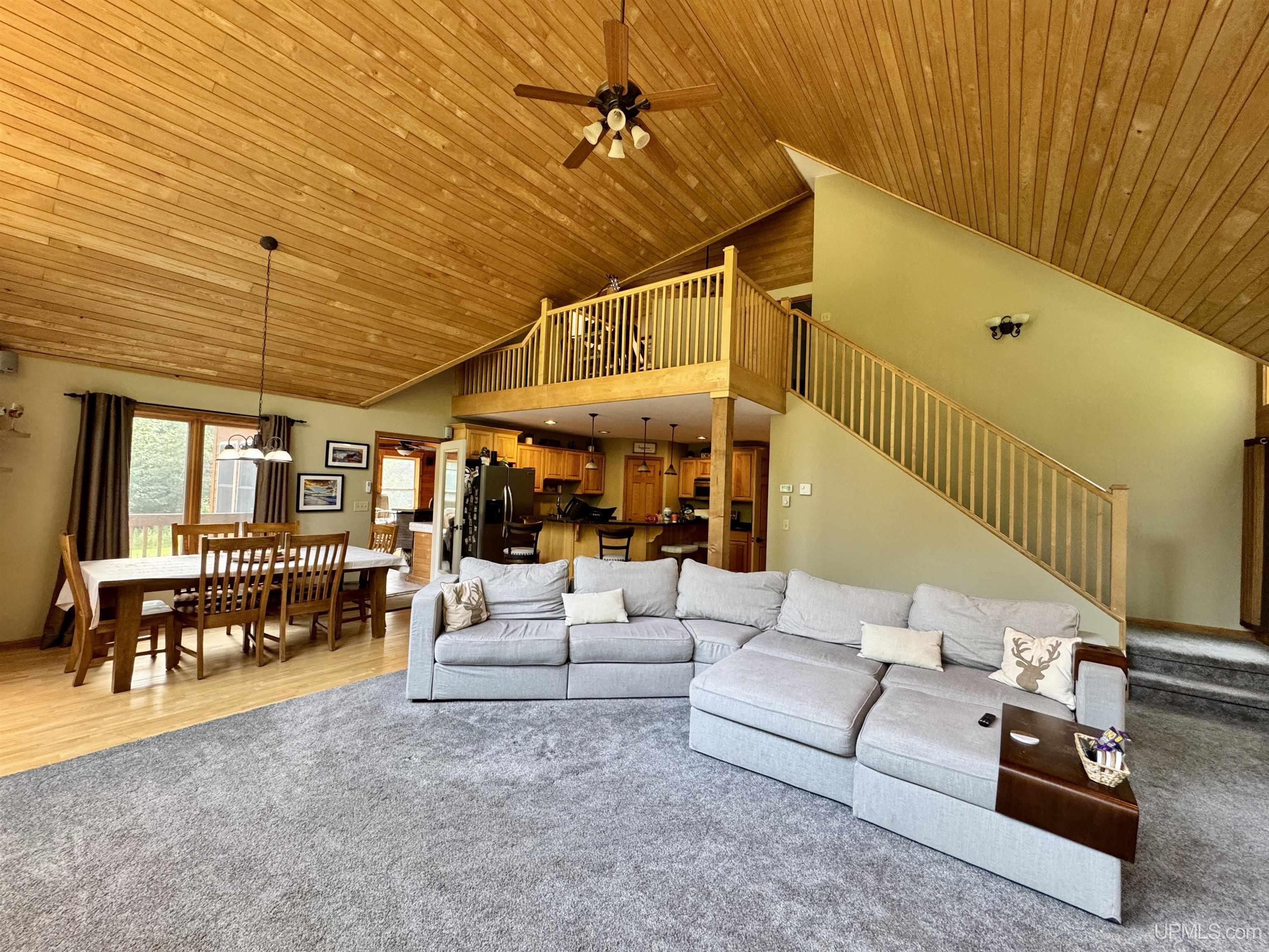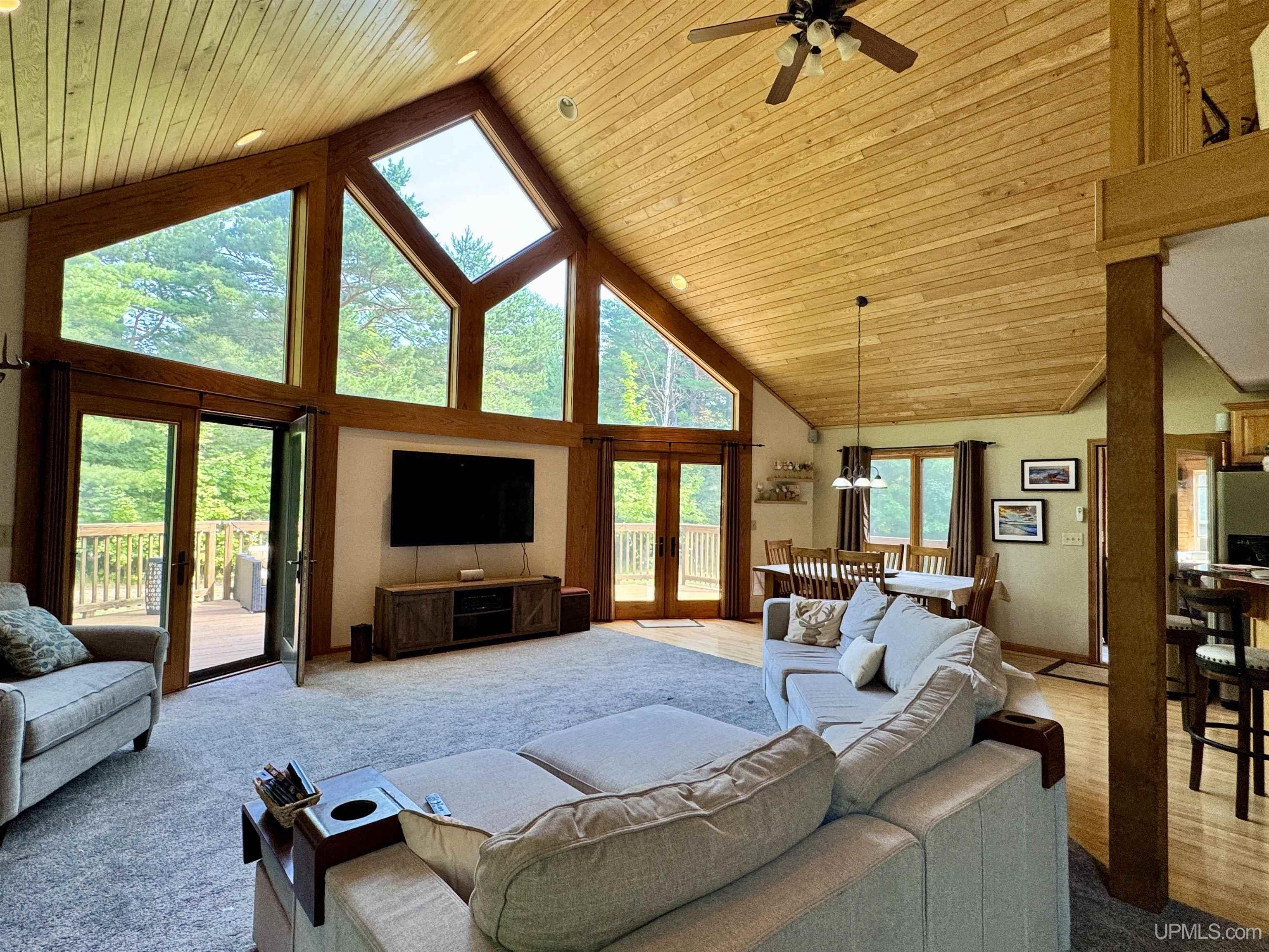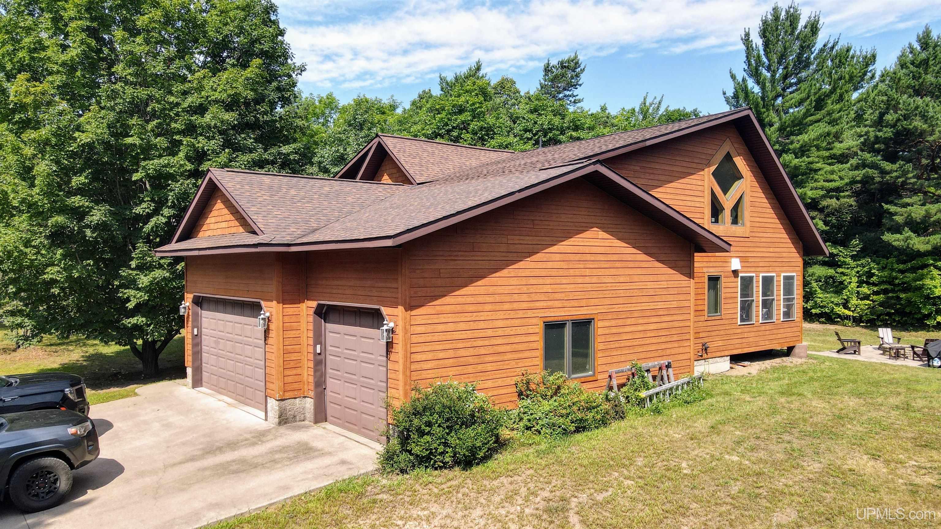 This 3,800 sq ft home, built in 2006, is nestled on a 2-acre lot and combines comfort, style, and spacious living. Features include 4 large bedrooms, 3 full bathrooms, maple hardwood floors, and hickory kitchen cabinets. The house boasts granite countertops, radiant in-floor heating throughout (even in the basement and garage), a cozy wood-burning fireplace, and a three-seasons room with grill and full exhaust system for seasonal relaxation. The full basement with a sauna, bonus room and private entrance is ideal for guests or a home office. Additional perks include a 3-car garage, a storage barn, a professionally landscaped yard with a fire pit, and brand-new central air (2023). Located in desirable Portage Township, it’s close to schools, recreation, and all the amenities you need.