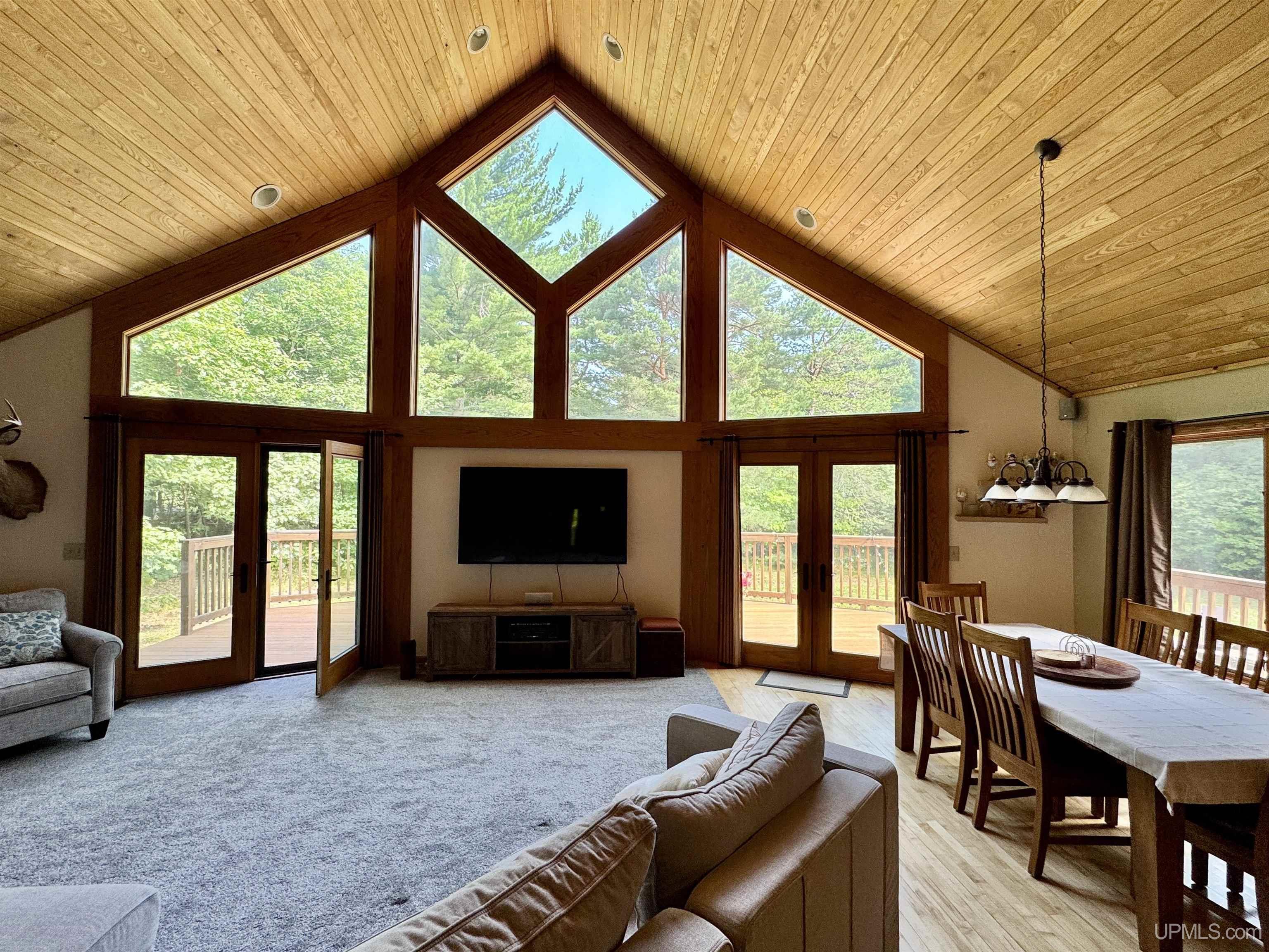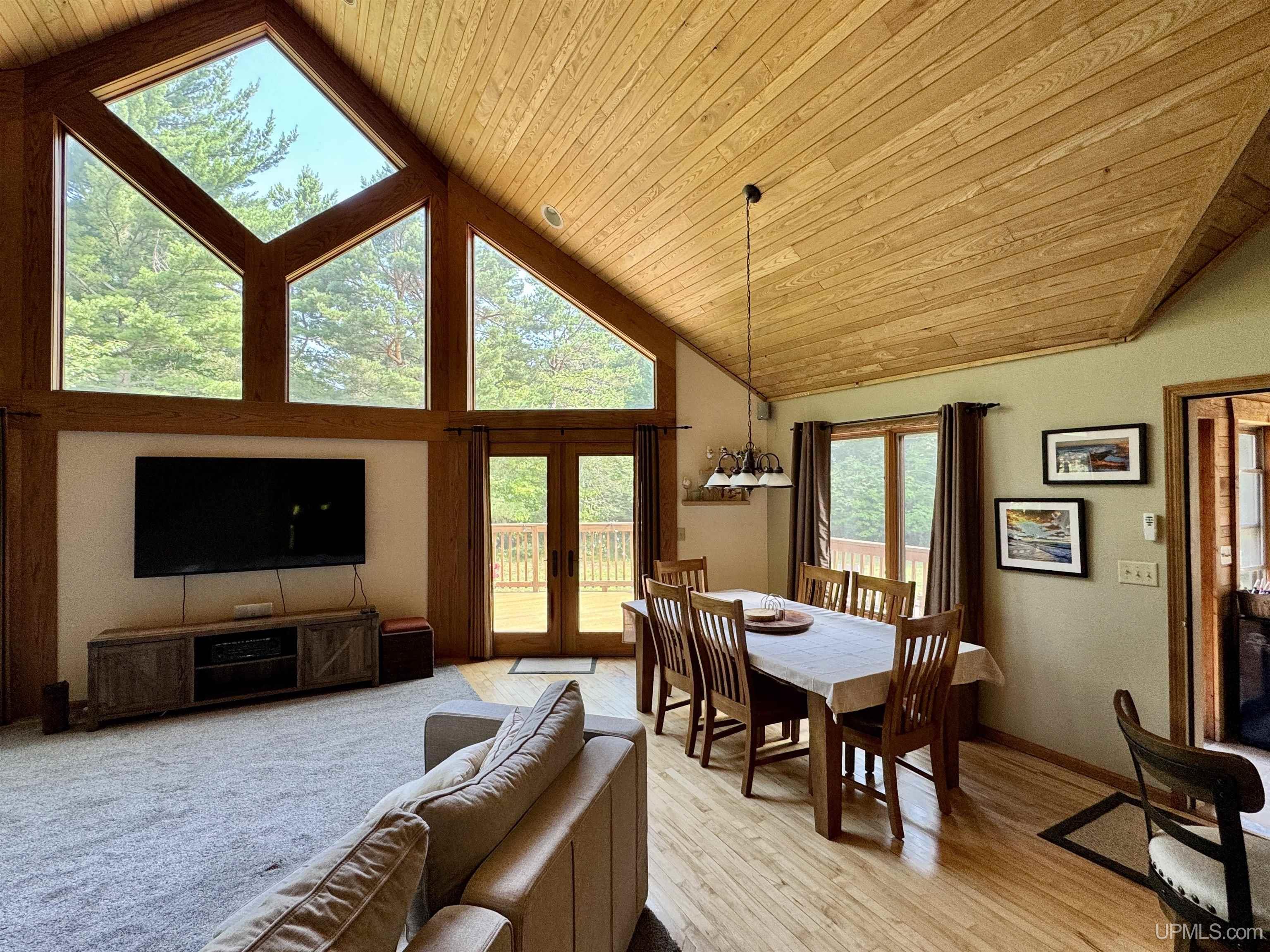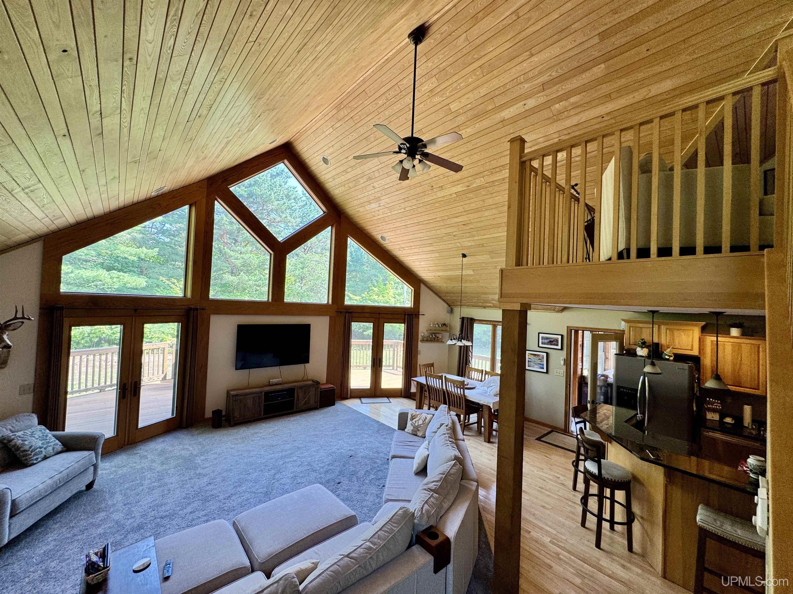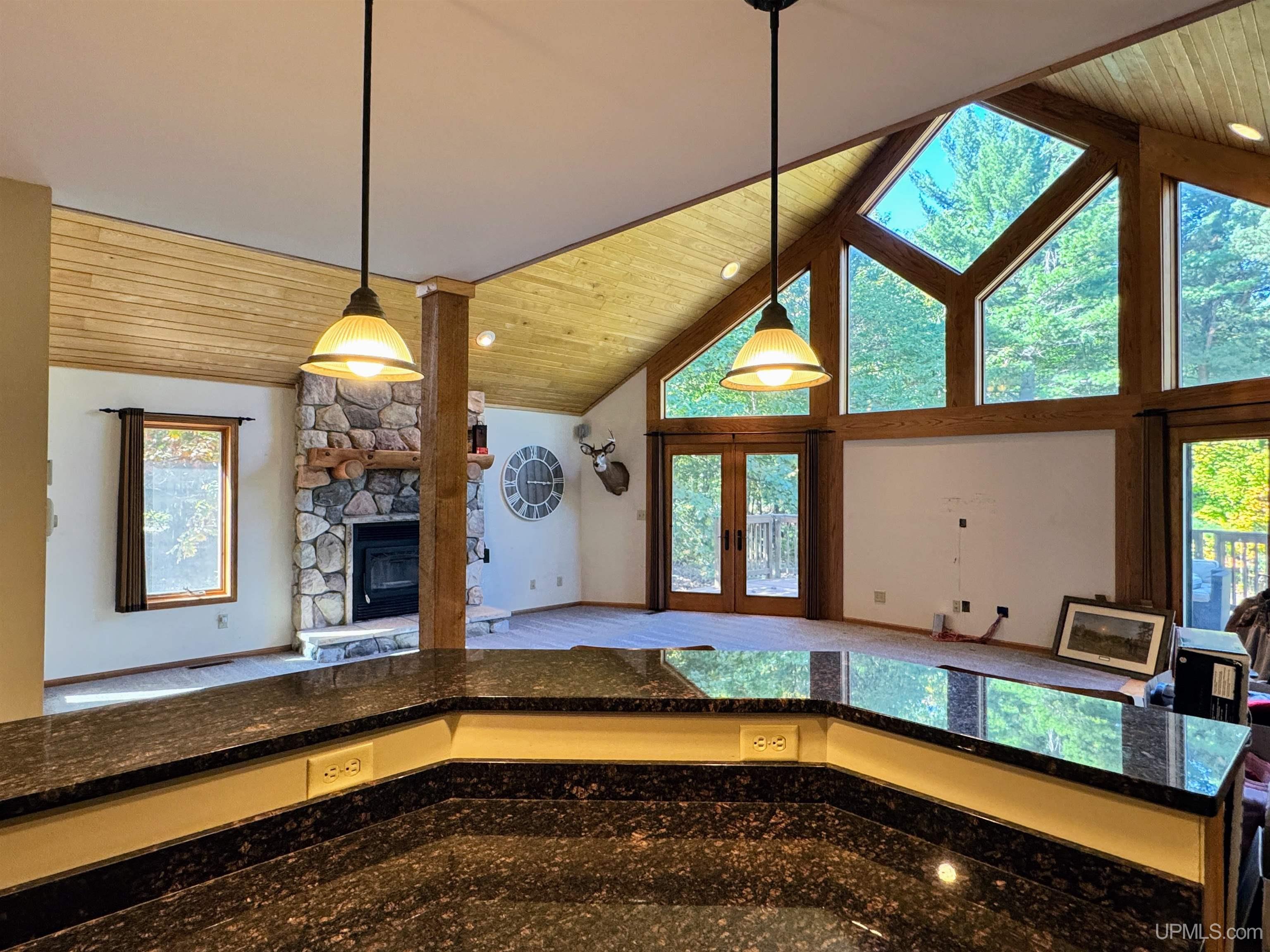 This 3,800 sq ft home, built in 2006, is nestled on a 2-acre lot and combines comfort, style, and spacious living. Features include 4 large bedrooms, 3 full bathrooms, maple hardwood floors, and hickory kitchen cabinets. The house boasts granite countertops, radiant in-floor heating throughout (even in the basement and garage), a cozy wood-burning fireplace, and a three-seasons room with grill and full exhaust system for seasonal relaxation. The full basement with a sauna, bonus room and private entrance is ideal for guests or a home office. Additional perks include a 3-car garage, a storage barn, a professionally landscaped yard with a fire pit, and brand-new central air (2023). Located in desirable Portage Township, it’s close to schools, recreation, and all the amenities you need.