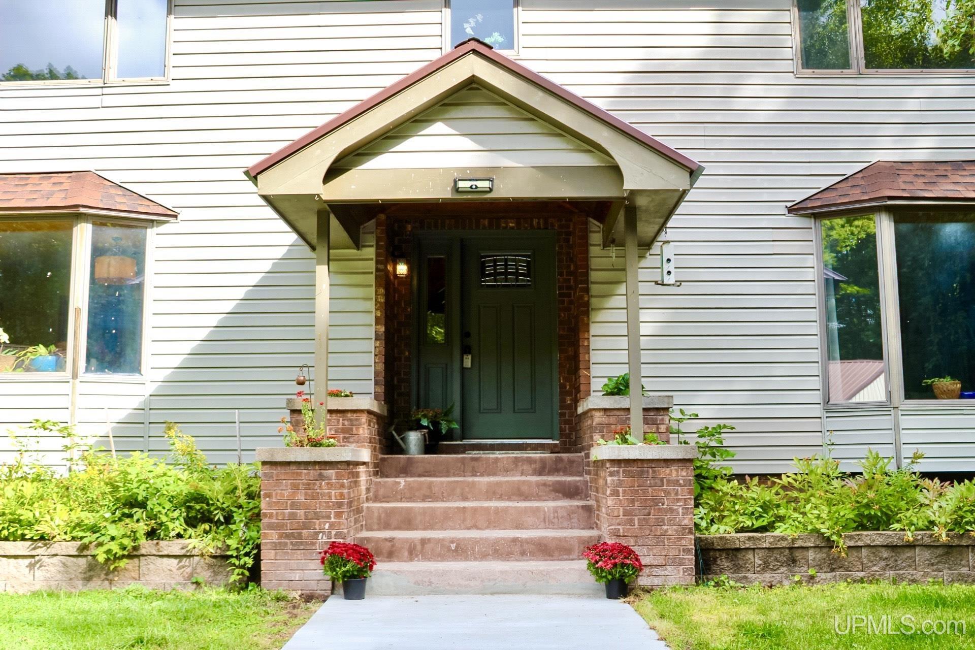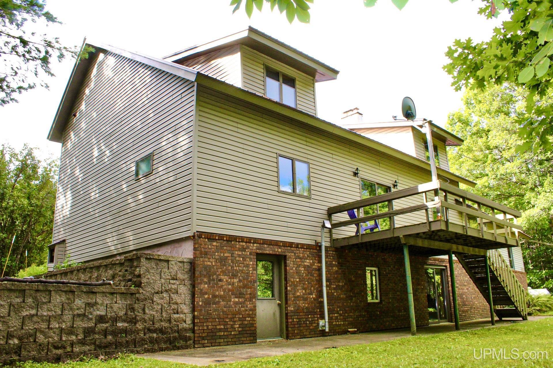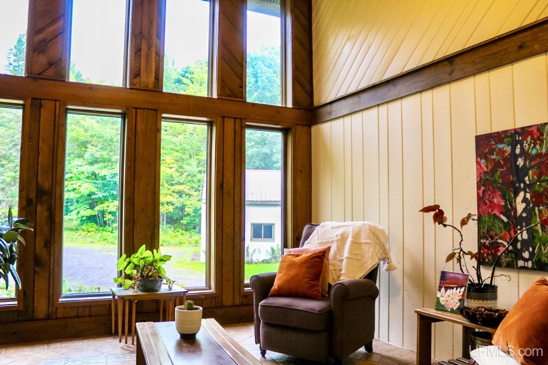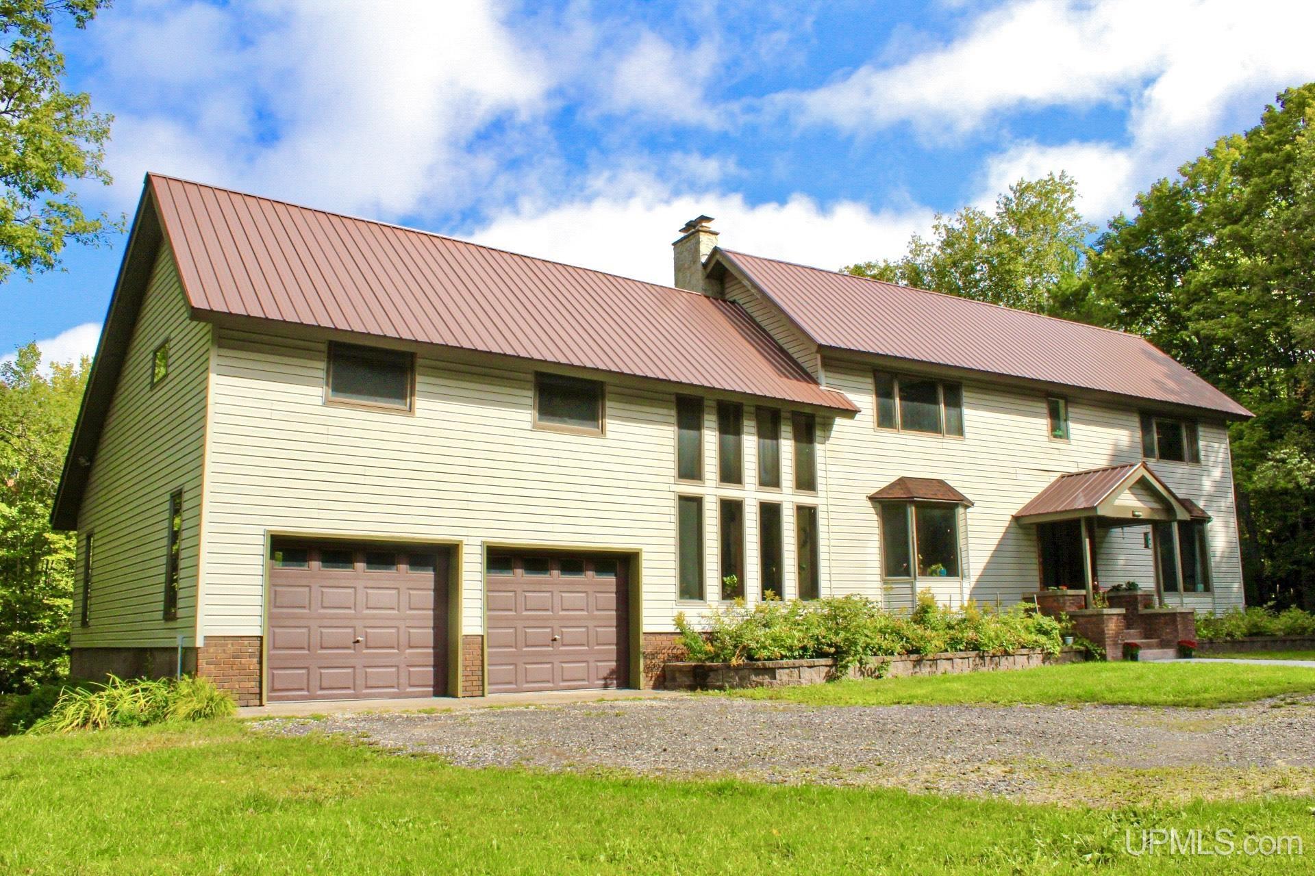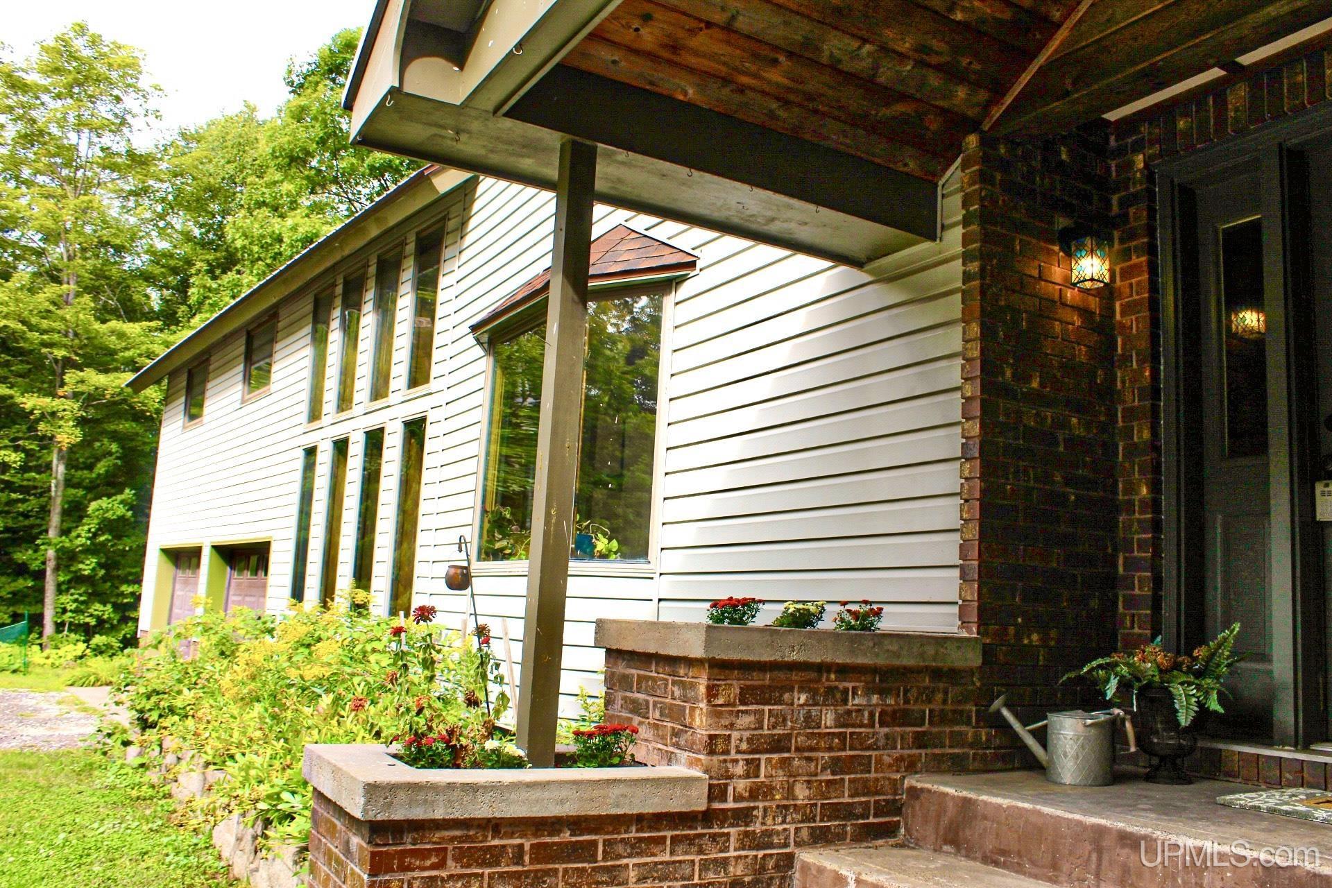 A beautiful home with an unbeatable location outside of Houghton! This four bedroom, four bathroom home on Springbrook Road provides plenty of interior space and acreage. It also has a pole barn with an attached lean-to and a firepit area. Step into the spacious main floor which has a beautiful view of the forest and creek below. The bright and remodeled kitchen has corian countertops and custom cabinetry. Newer appliances and furnishings throughout the home, yet with a classic and comfortable feel. Large living room with a sunken conversation pit and a powder room. Formal dining room is connected to the kitchen and entryway. There's also a space near the living room which has been used as an office. Stunning double story windows in the family room. There's a woodstove included in the family room as well. Laundry room/mudroom are also located on the main floor with convenient access to the two-car garage. There's an open studio space located above the garage which could be turned into living quarters. Take the staircase up to the second floor, where you can find the primary suite with an attached bathroom. In addition, there's a brand-new bathroom with a soaking tub and custom tile. Two other bedrooms round out the second floor. Head downstairs, where you can take the spiral staircase to the walk-out basement. There's a bar area and plenty of room with an office and additional storage. Also, you can find a large hot tub and sauna. There's a powder room and a bathroom with a shower. The tree-lined exterior features a paver patio with a flat yard, apple trees, and a peaceful forest with a brook. This property has an amazing location, with true country living yet only 5 minutes from the City of Houghton! Check out this fine home at an even better price today!