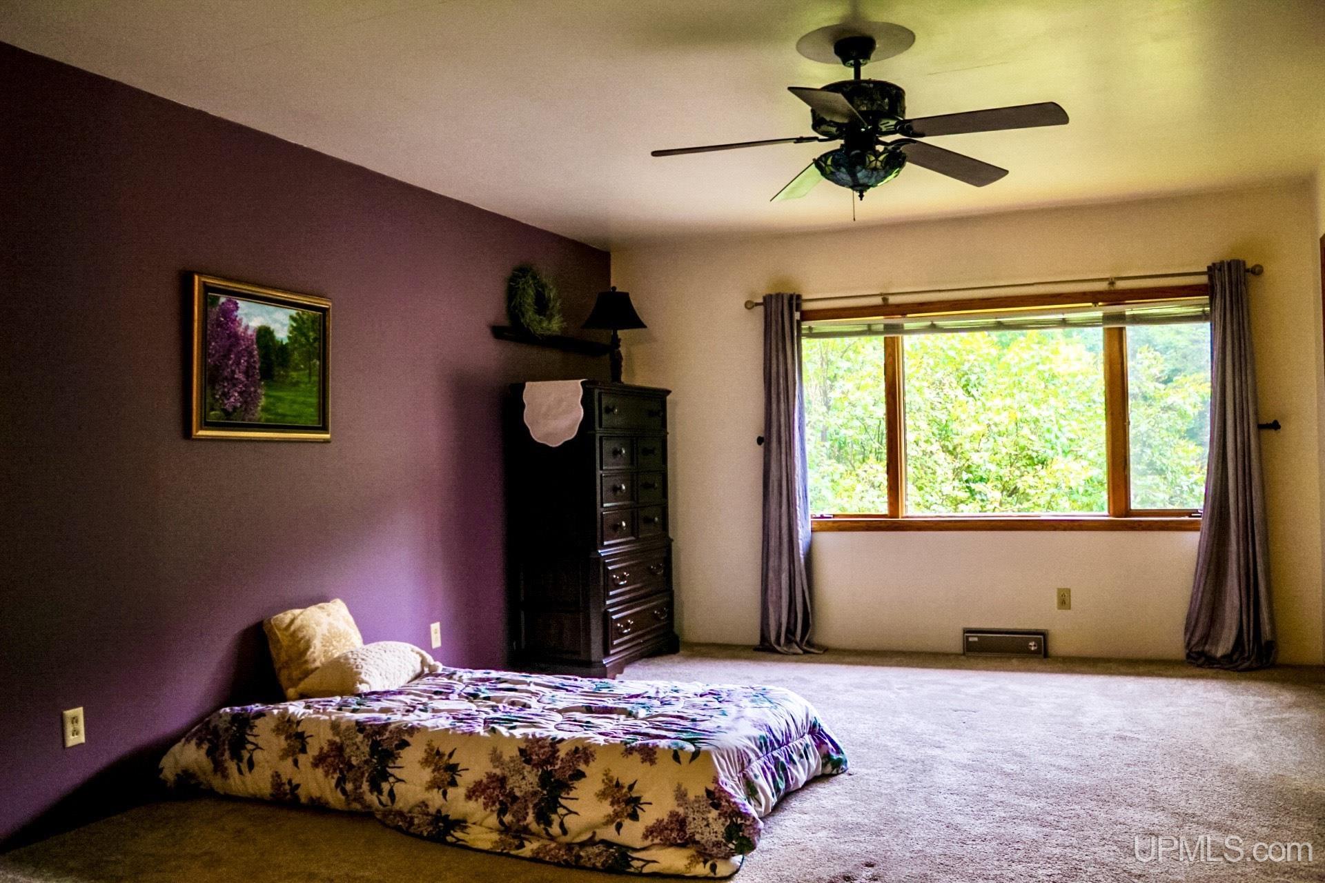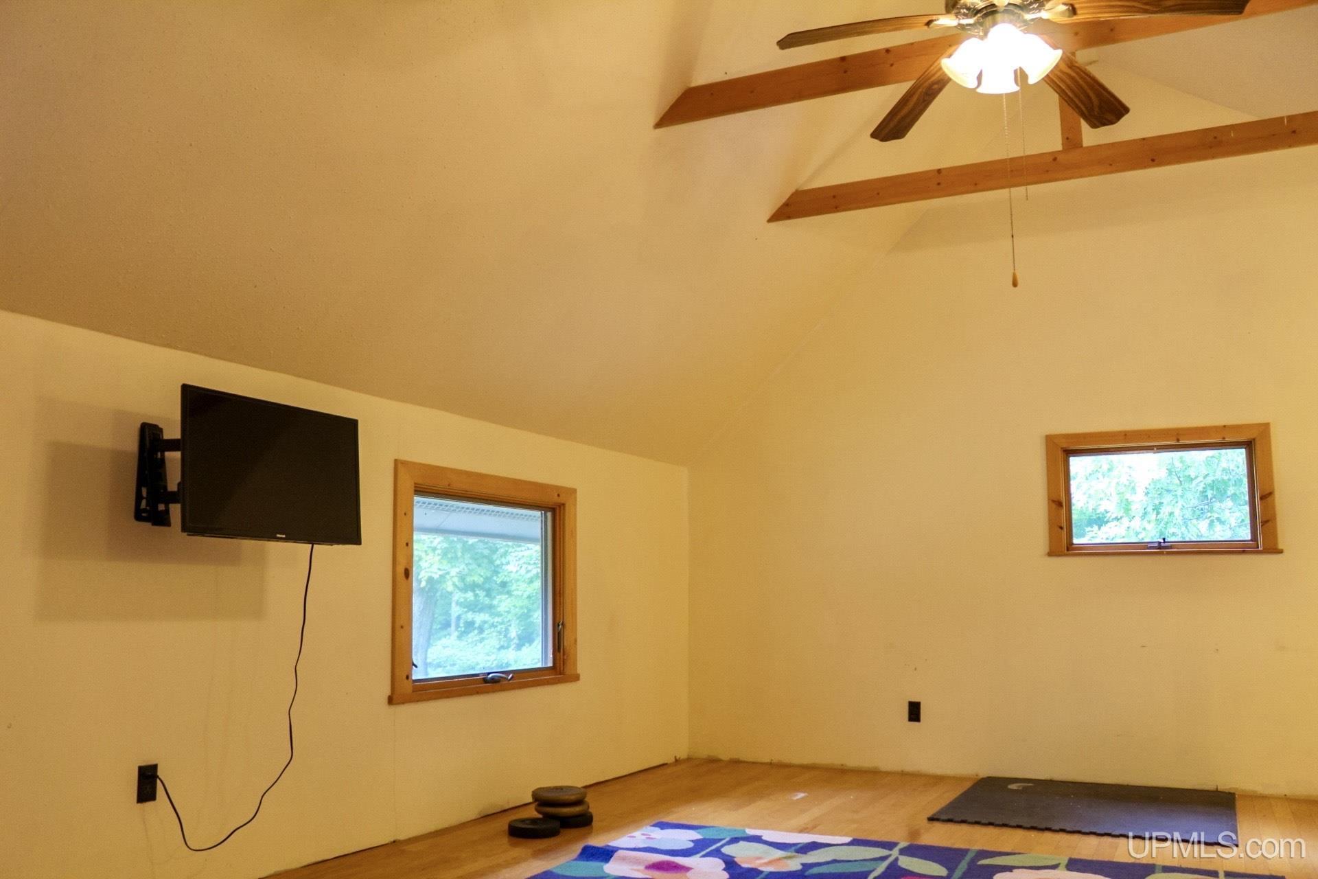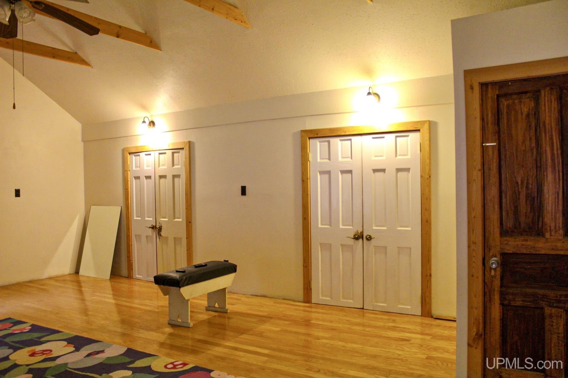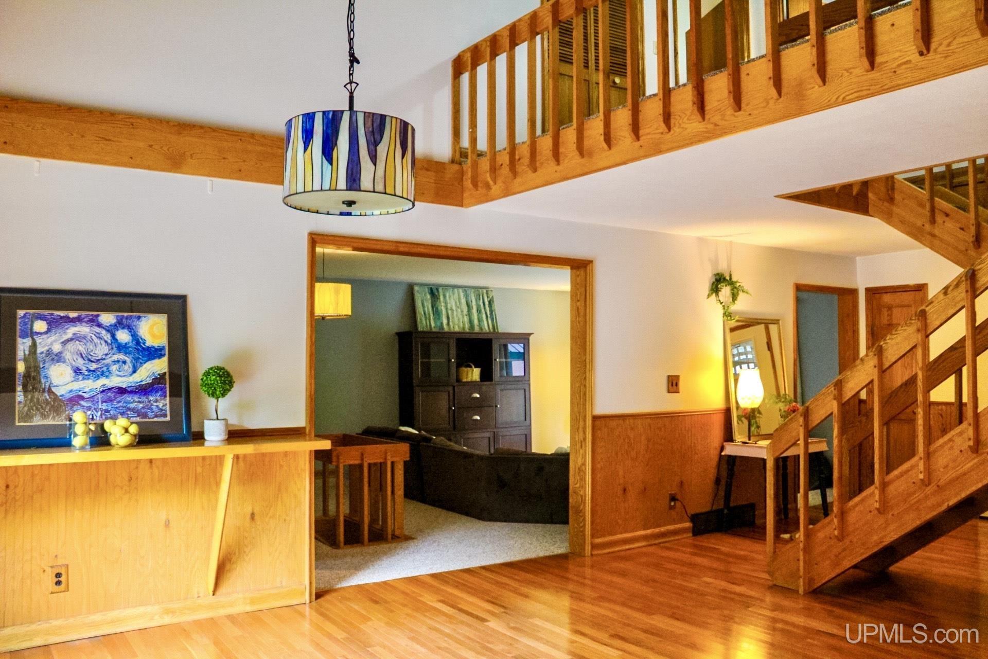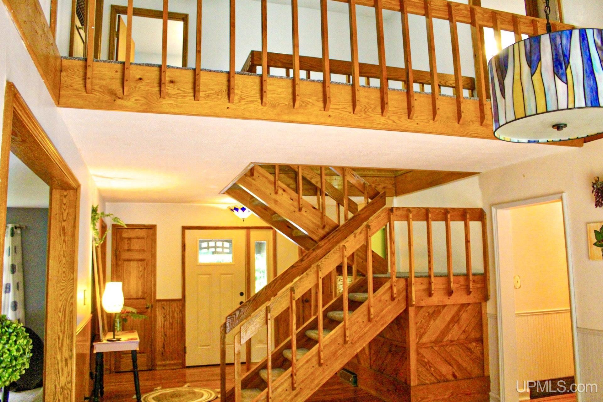 A beautiful home with an unbeatable location outside of Houghton! This four bedroom, four bathroom home on Springbrook Road provides plenty of interior space and acreage. It also has a pole barn with an attached lean-to and a firepit area. Step into the spacious main floor which has a beautiful view of the forest and creek below. The bright and remodeled kitchen has corian countertops and custom cabinetry. Newer appliances and furnishings throughout the home, yet with a classic and comfortable feel. Large living room with a sunken conversation pit and a powder room. Formal dining room is connected to the kitchen and entryway. There's also a space near the living room which has been used as an office. Stunning double story windows in the family room. There's a woodstove included in the family room as well. Laundry room/mudroom are also located on the main floor with convenient access to the two-car garage. There's an open studio space located above the garage which could be turned into living quarters. Take the staircase up to the second floor, where you can find the primary suite with an attached bathroom. In addition, there's a brand-new bathroom with a soaking tub and custom tile. Two other bedrooms round out the second floor. Head downstairs, where you can take the spiral staircase to the walk-out basement. There's a bar area and plenty of room with an office and additional storage. Also, you can find a large hot tub and sauna. There's a powder room and a bathroom with a shower. The tree-lined exterior features a paver patio with a flat yard, apple trees, and a peaceful forest with a brook. This property has an amazing location, with true country living yet only 5 minutes from the City of Houghton! Check out this fine home at an even better price today!