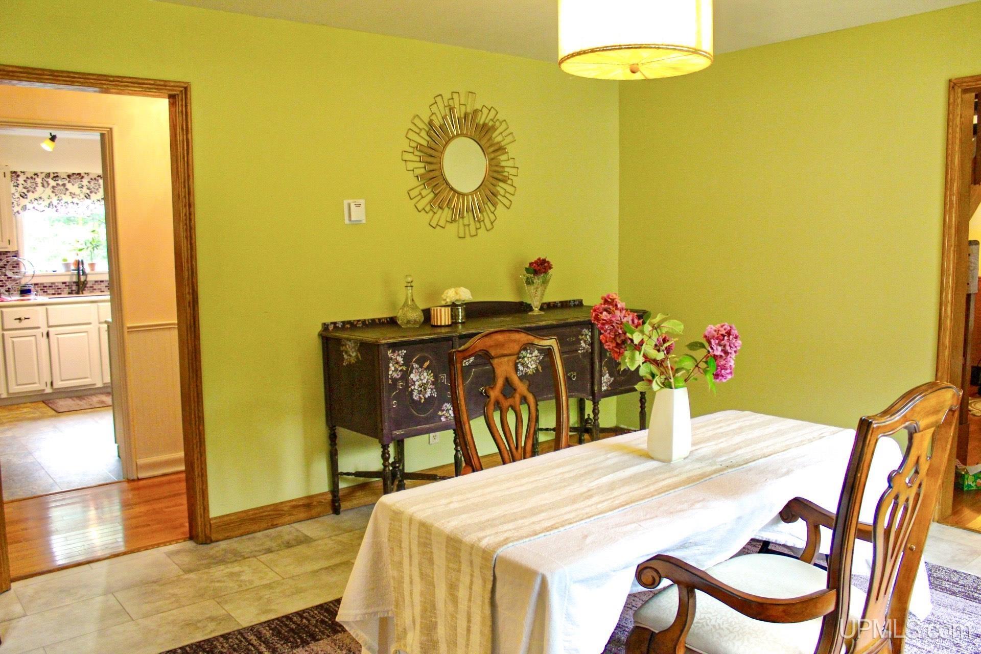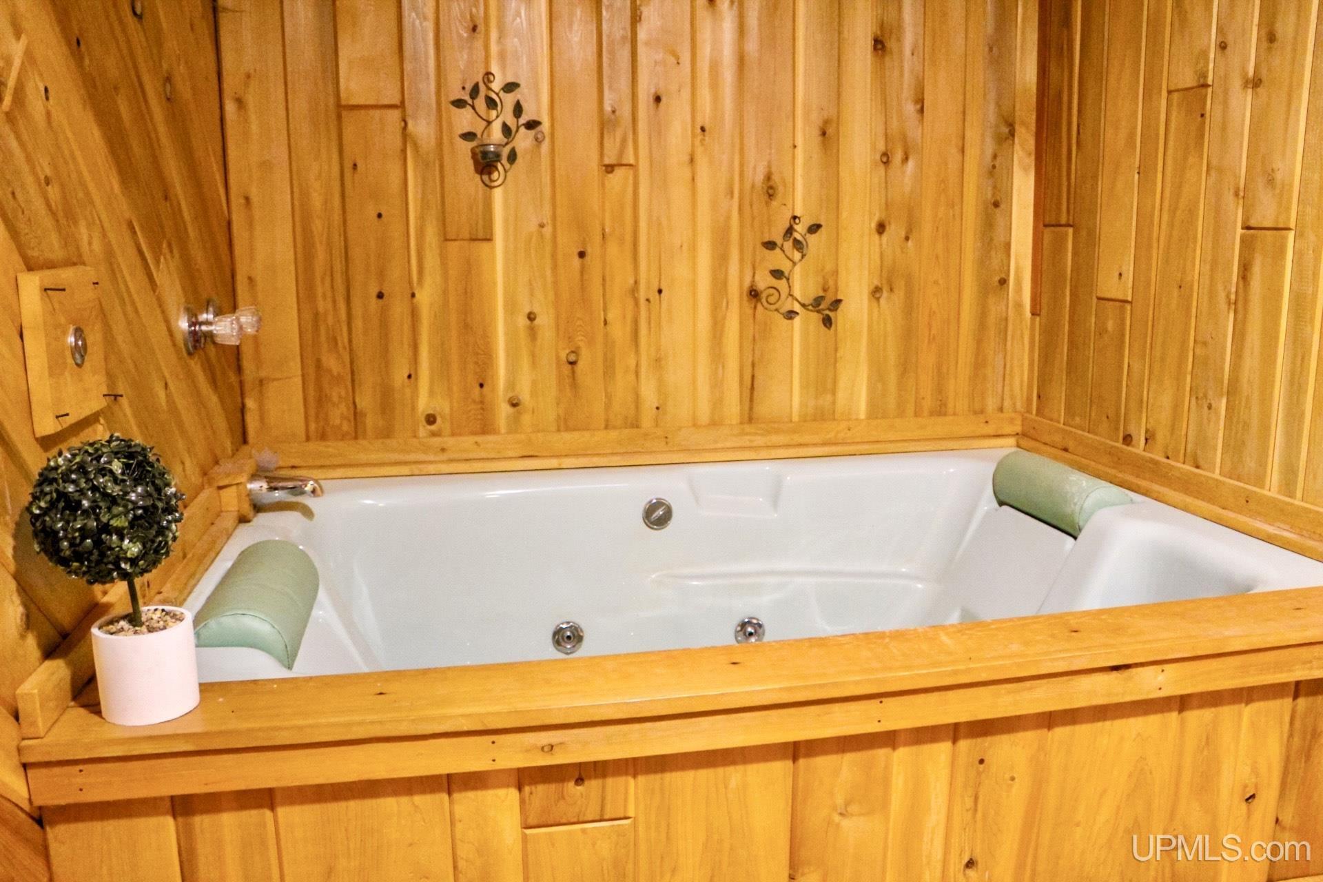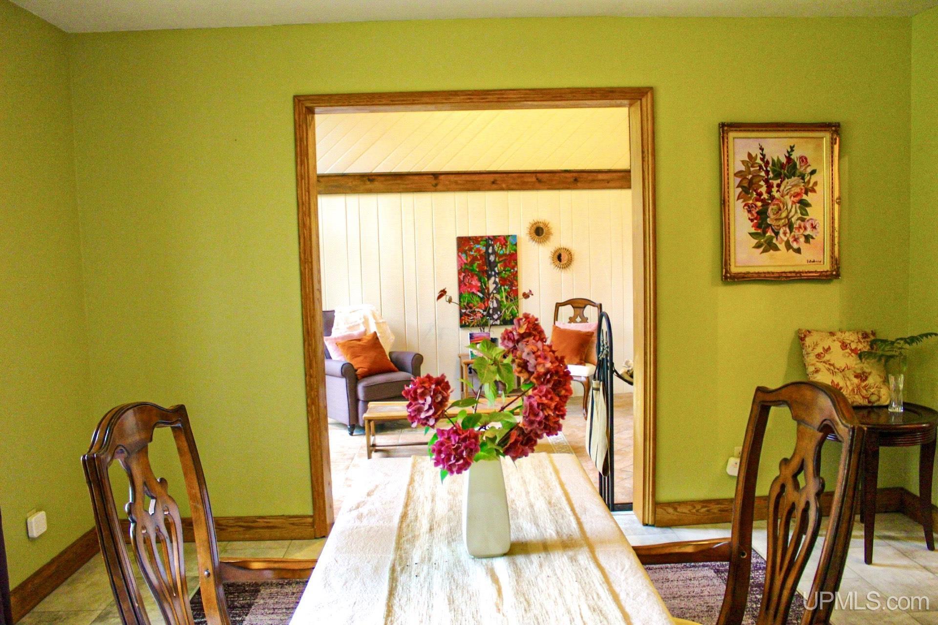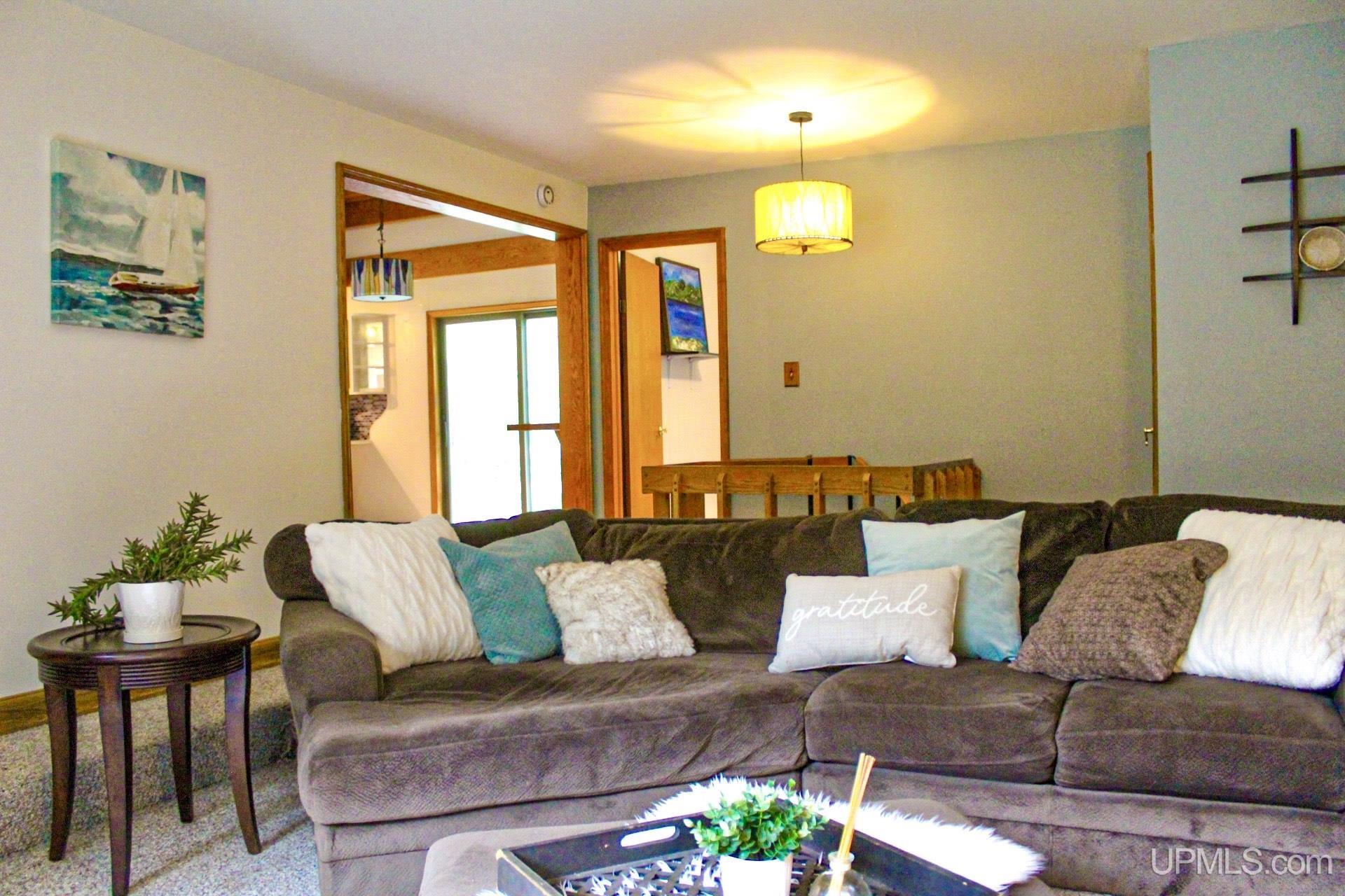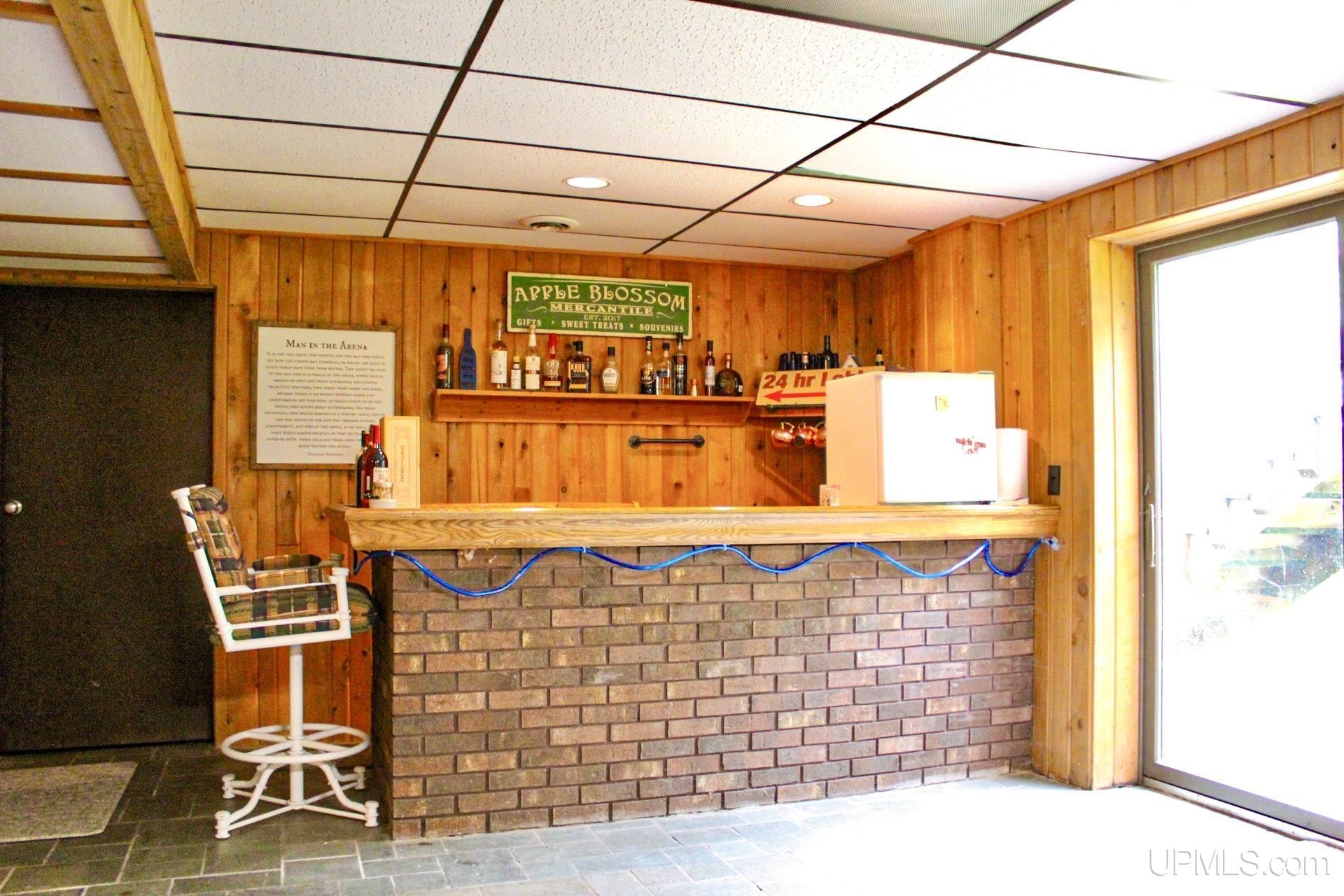A beautiful home with an unbeatable location outside of Houghton! This four bedroom, four bathroom home on Springbrook Road provides plenty of interior space and acreage. It also has a pole barn with an attached lean-to and a firepit area. Step into the spacious main floor which has a beautiful view of the forest and creek below. The bright and remodeled kitchen has corian countertops and custom cabinetry. Newer appliances and furnishings throughout the home, yet with a classic and comfortable feel. Large living room with a sunken conversation pit and a powder room. Formal dining room is connected to the kitchen and entryway. There's also a space near the living room which has been used as an office. Stunning double story windows in the family room. There's a woodstove included in the family room as well. Laundry room/mudroom are also located on the main floor with convenient access to the two-car garage. There's an open studio space located above the garage which could be turned into living quarters. Take the staircase up to the second floor, where you can find the primary suite with an attached bathroom. In addition, there's a brand-new bathroom with a soaking tub and custom tile. Two other bedrooms round out the second floor. Head downstairs, where you can take the spiral staircase to the walk-out basement. There's a bar area and plenty of room with an office and additional storage. Also, you can find a large hot tub and sauna. There's a powder room and a bathroom with a shower. The tree-lined exterior features a paver patio with a flat yard, apple trees, and a peaceful forest with a brook. This property has an amazing location, with true country living yet only 5 minutes from the City of Houghton! Check out this fine home at an even better price today!