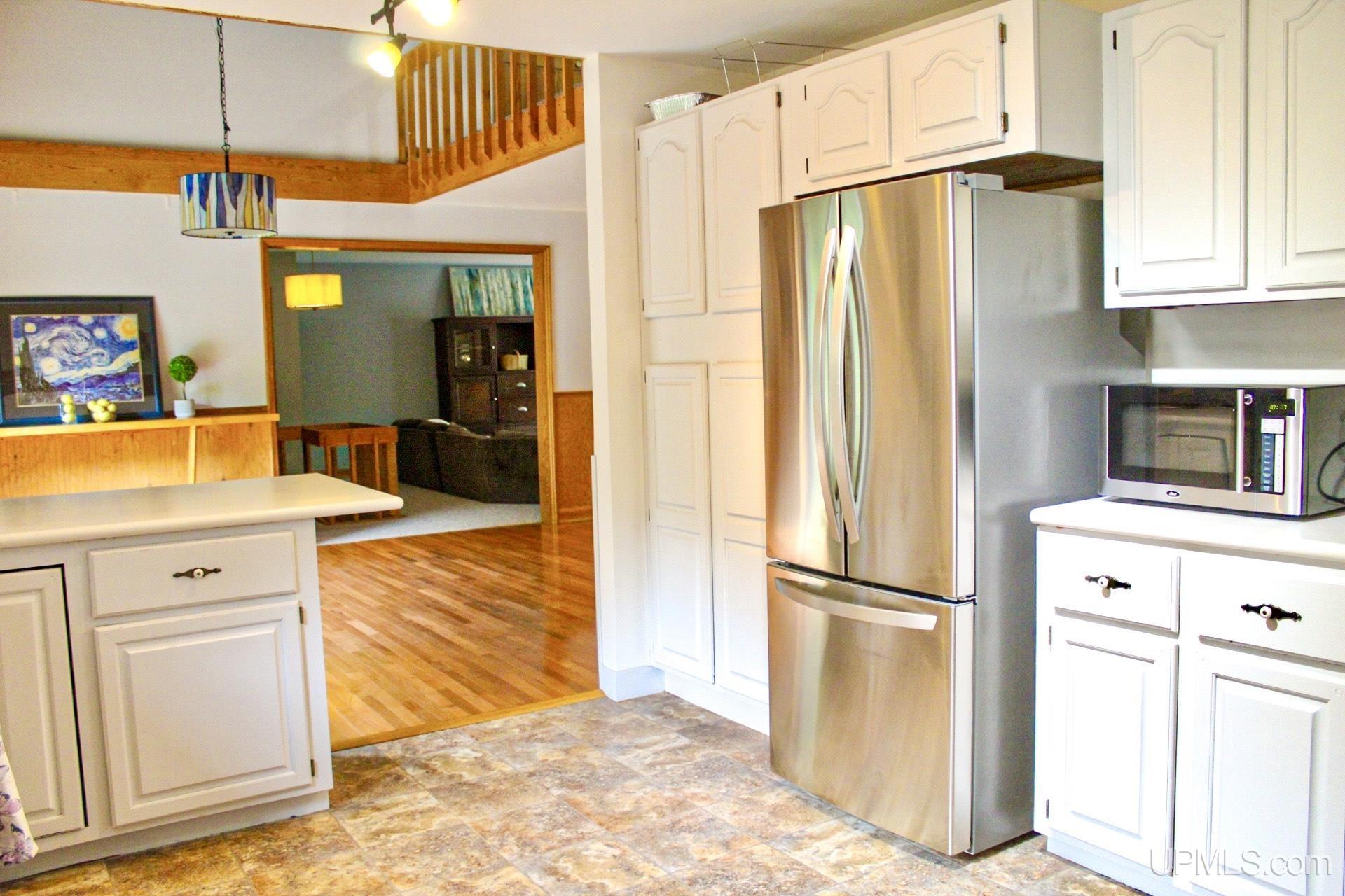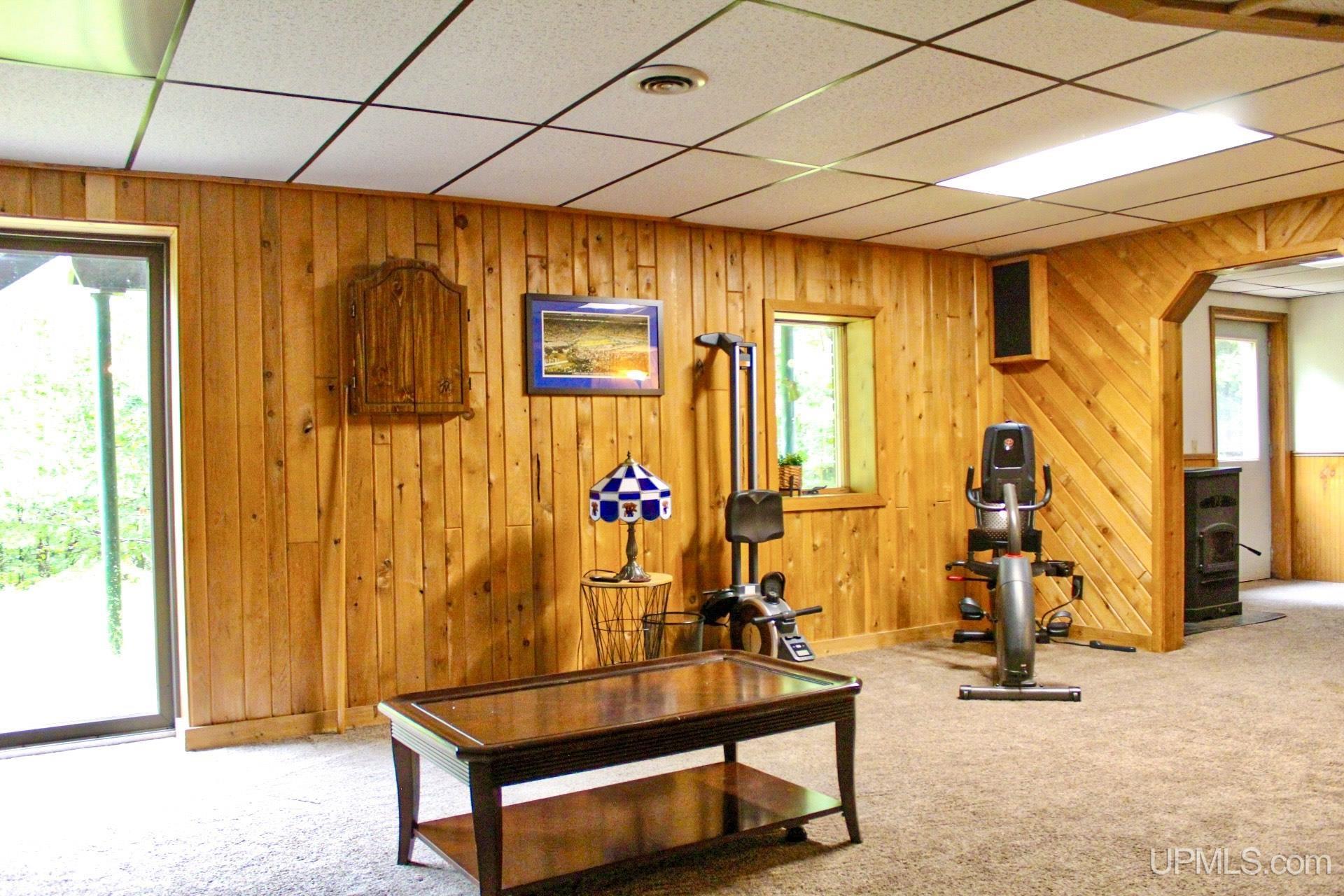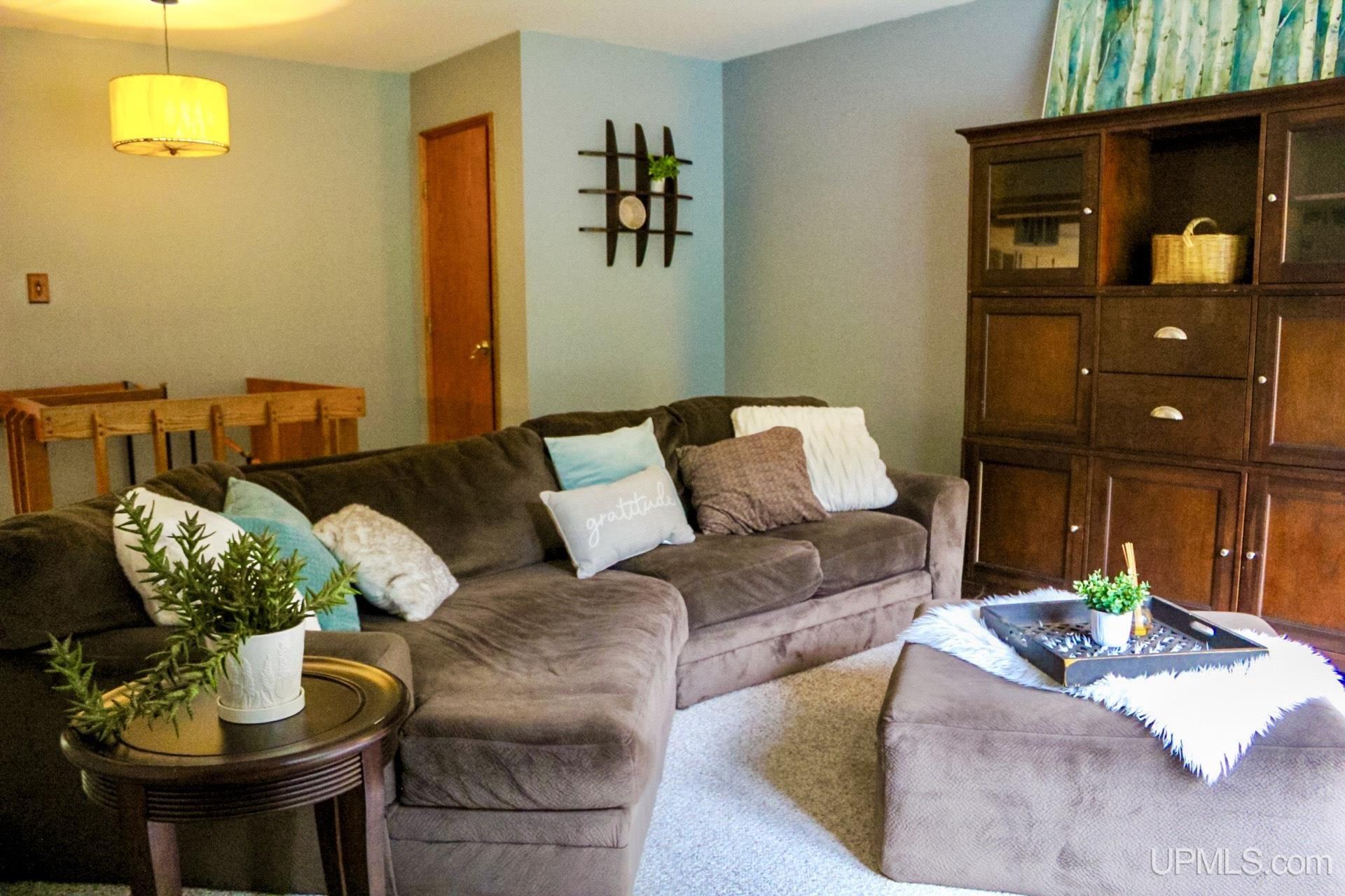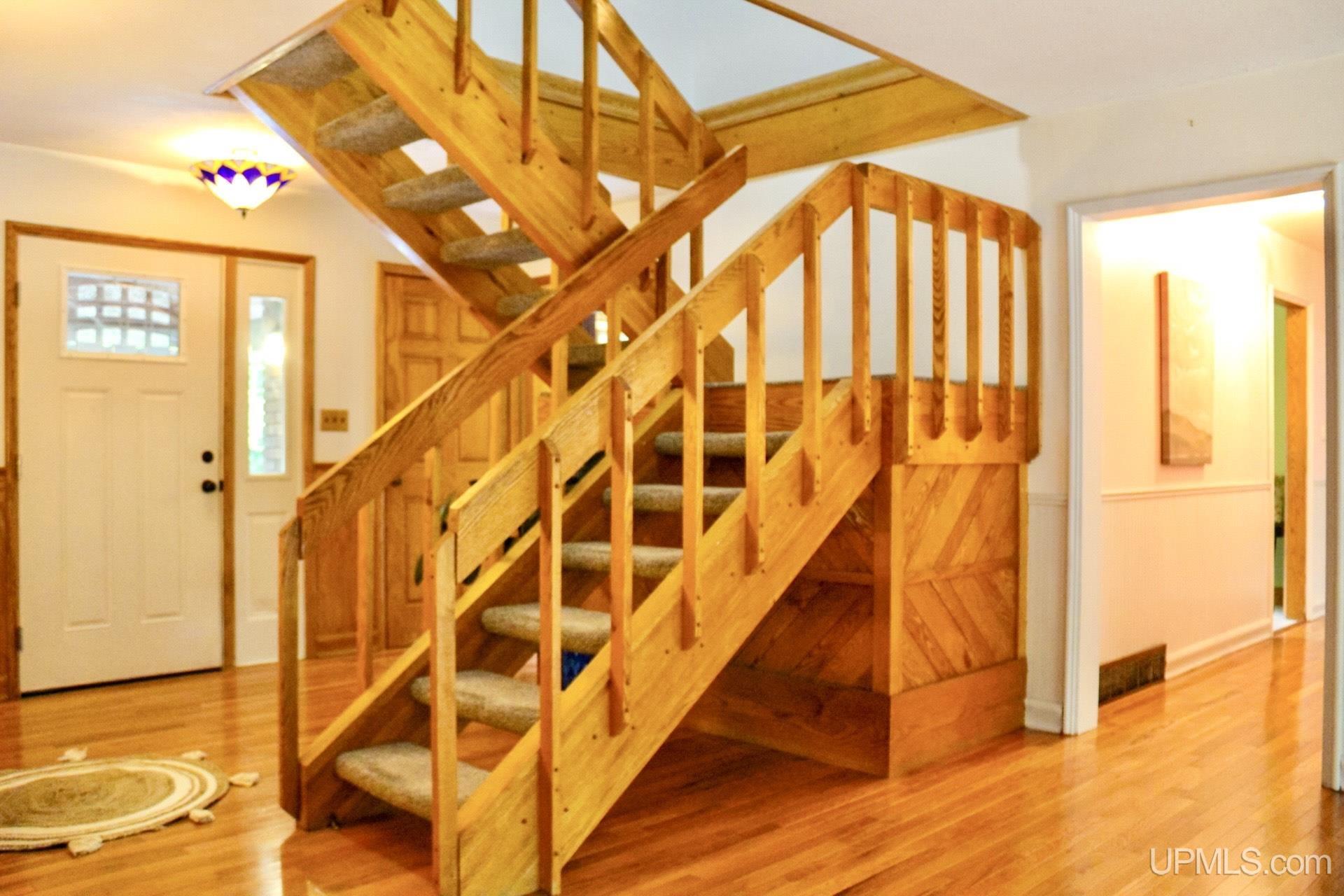 A beautiful home with an unbeatable location outside of Houghton! This four bedroom, four bathroom home on Springbrook Road provides plenty of interior space and acreage. It also has a pole barn with an attached lean-to and a firepit area. Step into the spacious main floor which has a beautiful view of the forest and creek below. The bright and remodeled kitchen has corian countertops and custom cabinetry. Newer appliances and furnishings throughout the home, yet with a classic and comfortable feel. Large living room with a sunken conversation pit and a powder room. Formal dining room is connected to the kitchen and entryway. There's also a space near the living room which has been used as an office. Stunning double story windows in the family room. There's a woodstove included in the family room as well. Laundry room/mudroom are also located on the main floor with convenient access to the two-car garage. There's an open studio space located above the garage which could be turned into living quarters. Take the staircase up to the second floor, where you can find the primary suite with an attached bathroom. In addition, there's a brand-new bathroom with a soaking tub and custom tile. Two other bedrooms round out the second floor. Head downstairs, where you can take the spiral staircase to the walk-out basement. There's a bar area and plenty of room with an office and additional storage. Also, you can find a large hot tub and sauna. There's a powder room and a bathroom with a shower. The tree-lined exterior features a paver patio with a flat yard, apple trees, and a peaceful forest with a brook. This property has an amazing location, with true country living yet only 5 minutes from the City of Houghton! Check out this fine home at an even better price today!