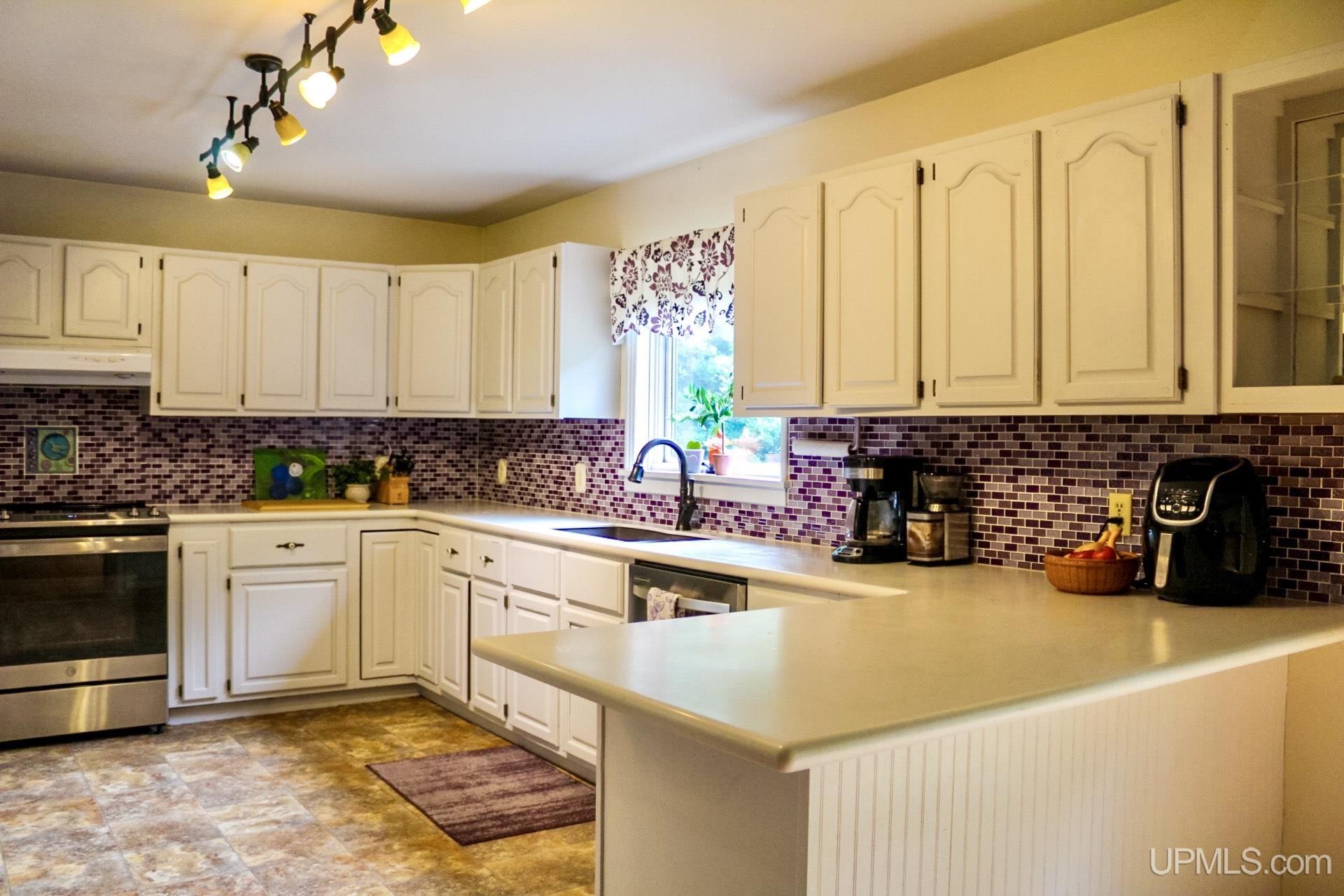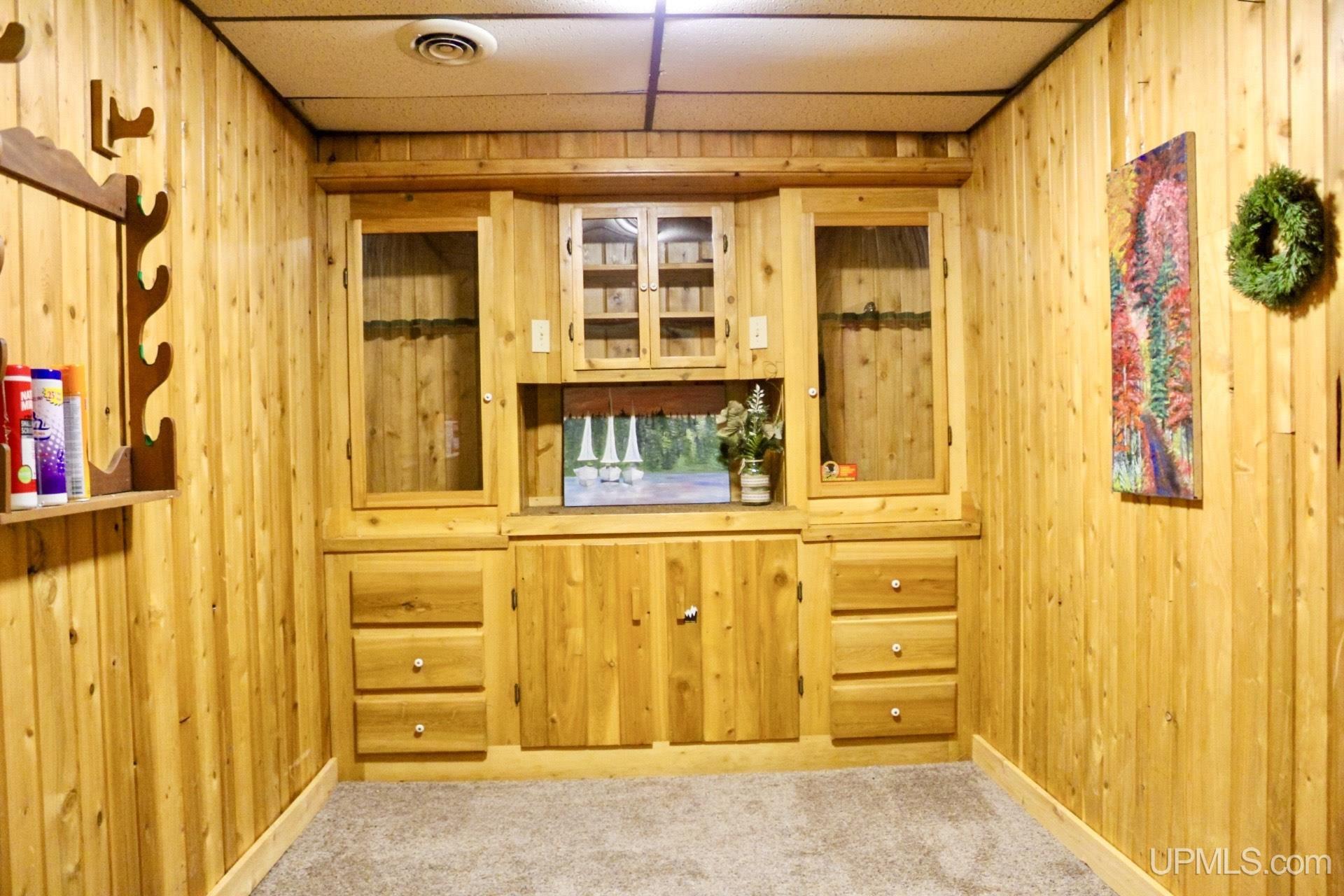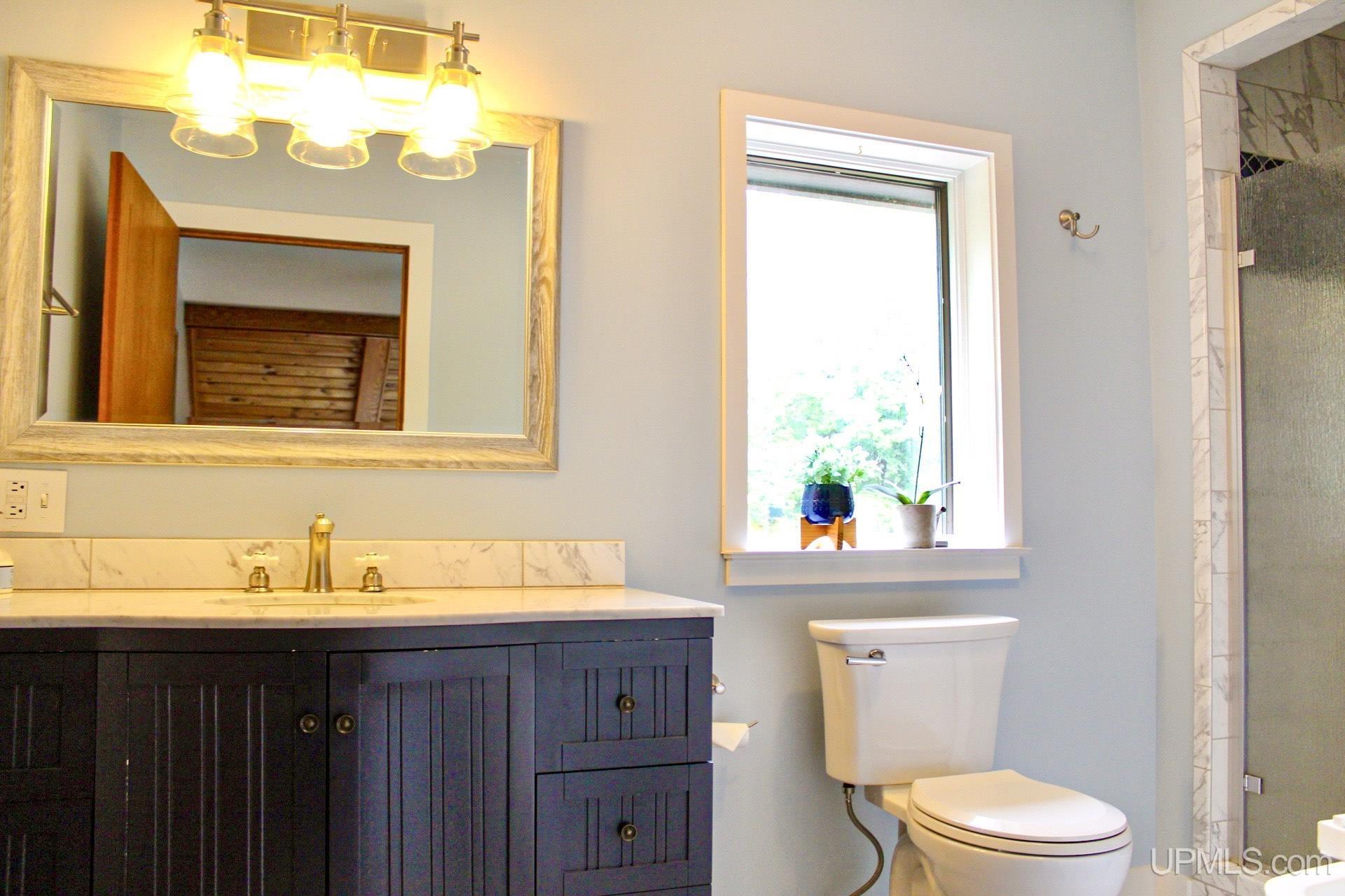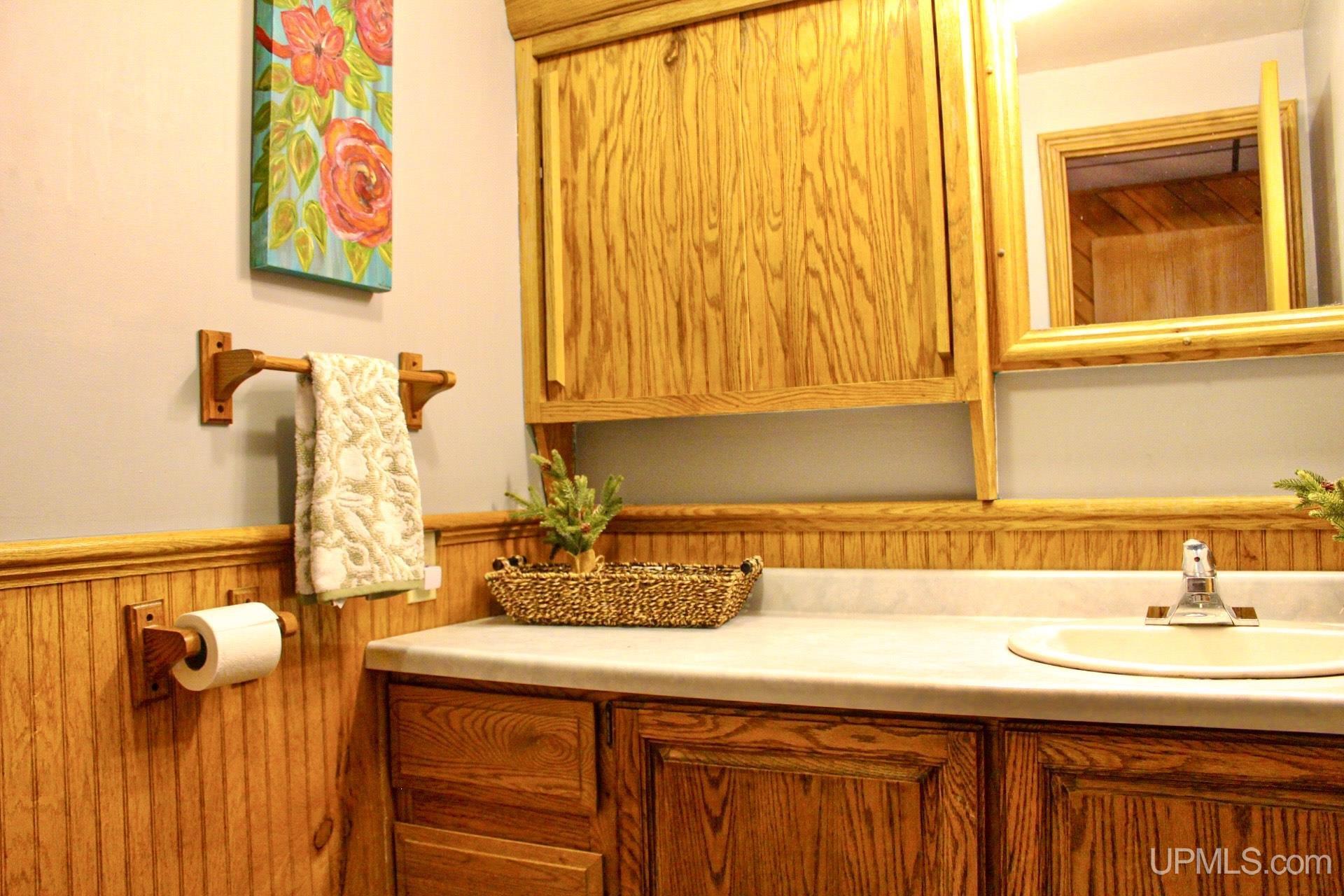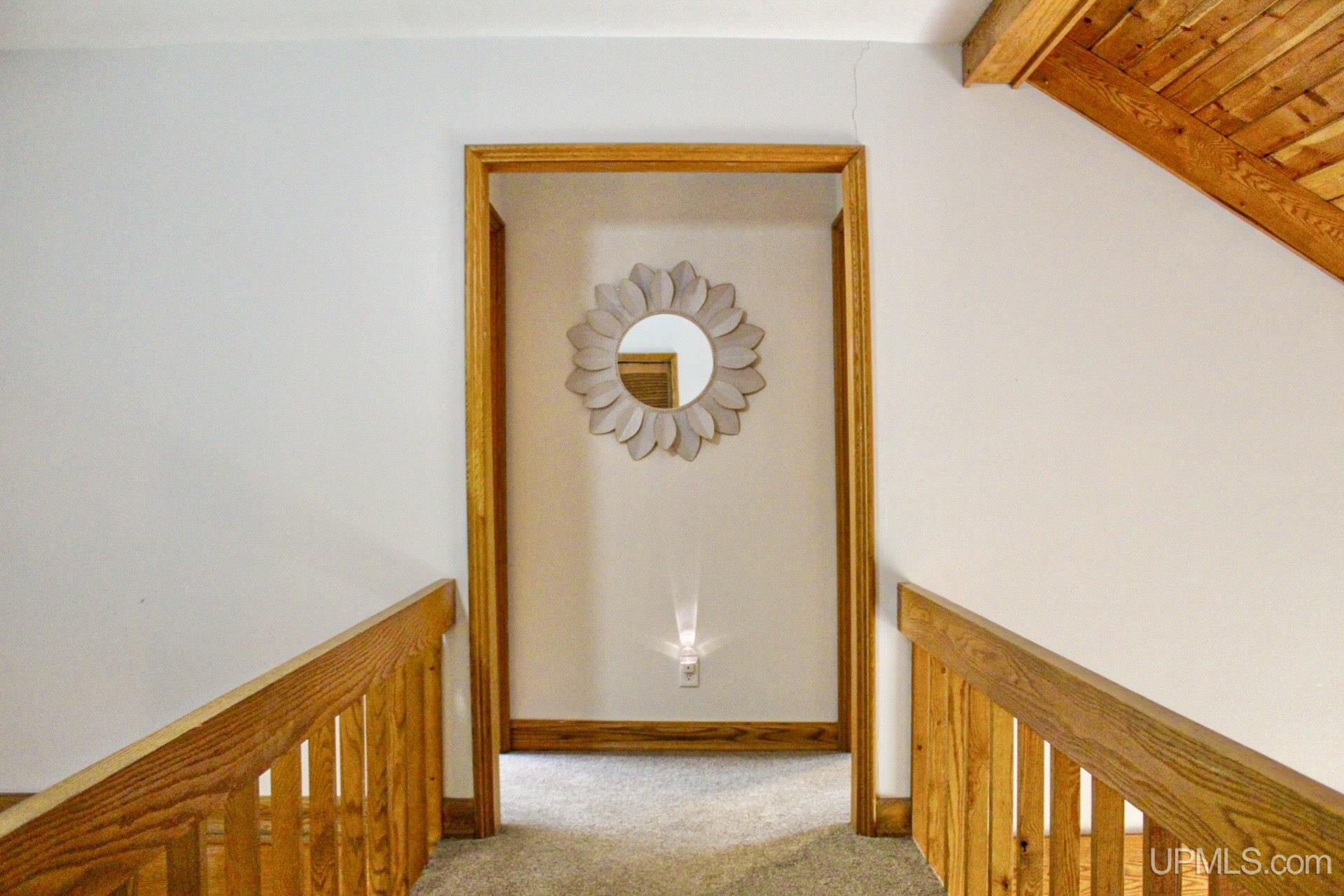 A beautiful home with an unbeatable location outside of Houghton! This four bedroom, four bathroom home on Springbrook Road provides plenty of interior space and acreage. It also has a pole barn with an attached lean-to and a firepit area. Step into the spacious main floor which has a beautiful view of the forest and creek below. The bright and remodeled kitchen has corian countertops and custom cabinetry. Newer appliances and furnishings throughout the home, yet with a classic and comfortable feel. Large living room with a sunken conversation pit and a powder room. Formal dining room is connected to the kitchen and entryway. There's also a space near the living room which has been used as an office. Stunning double story windows in the family room. There's a woodstove included in the family room as well. Laundry room/mudroom are also located on the main floor with convenient access to the two-car garage. There's an open studio space located above the garage which could be turned into living quarters. Take the staircase up to the second floor, where you can find the primary suite with an attached bathroom. In addition, there's a brand-new bathroom with a soaking tub and custom tile. Two other bedrooms round out the second floor. Head downstairs, where you can take the spiral staircase to the walk-out basement. There's a bar area and plenty of room with an office and additional storage. Also, you can find a large hot tub and sauna. There's a powder room and a bathroom with a shower. The tree-lined exterior features a paver patio with a flat yard, apple trees, and a peaceful forest with a brook. This property has an amazing location, with true country living yet only 5 minutes from the City of Houghton! Check out this fine home at an even better price today!