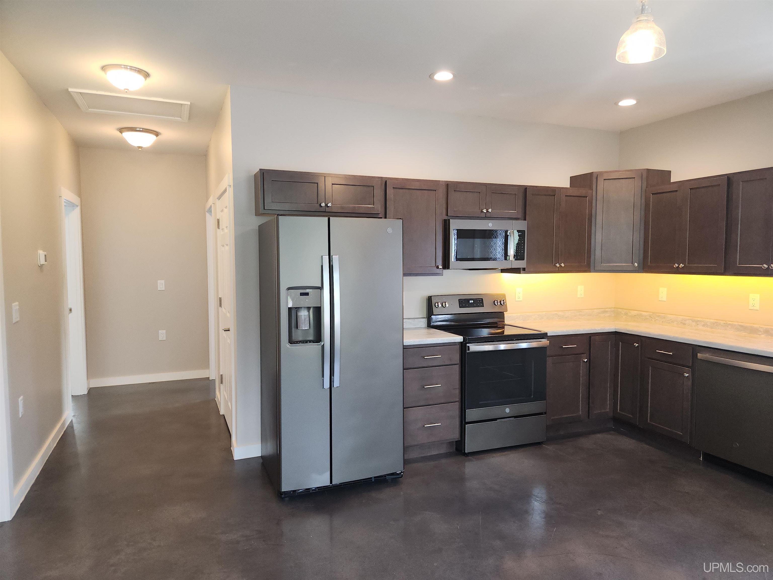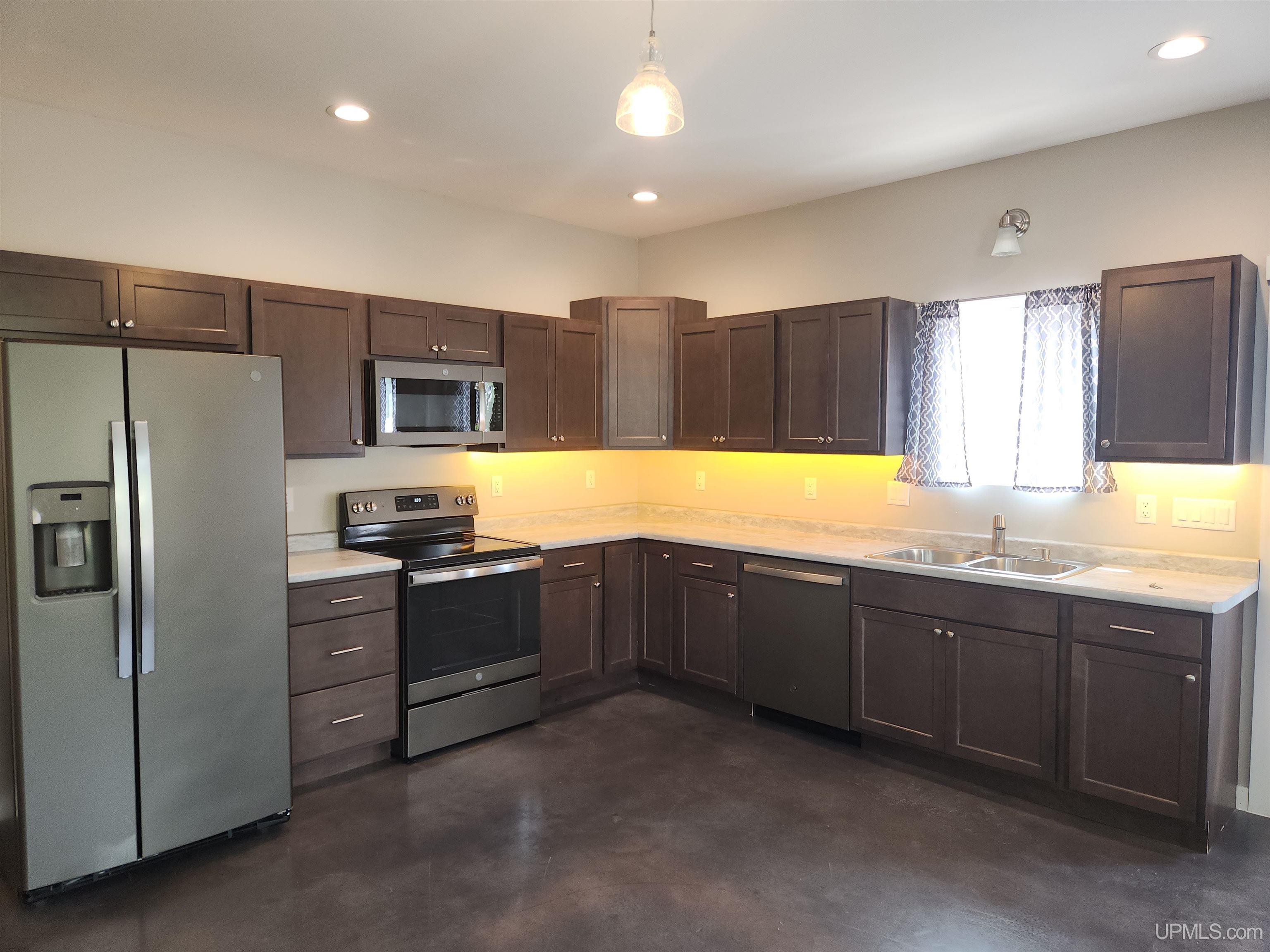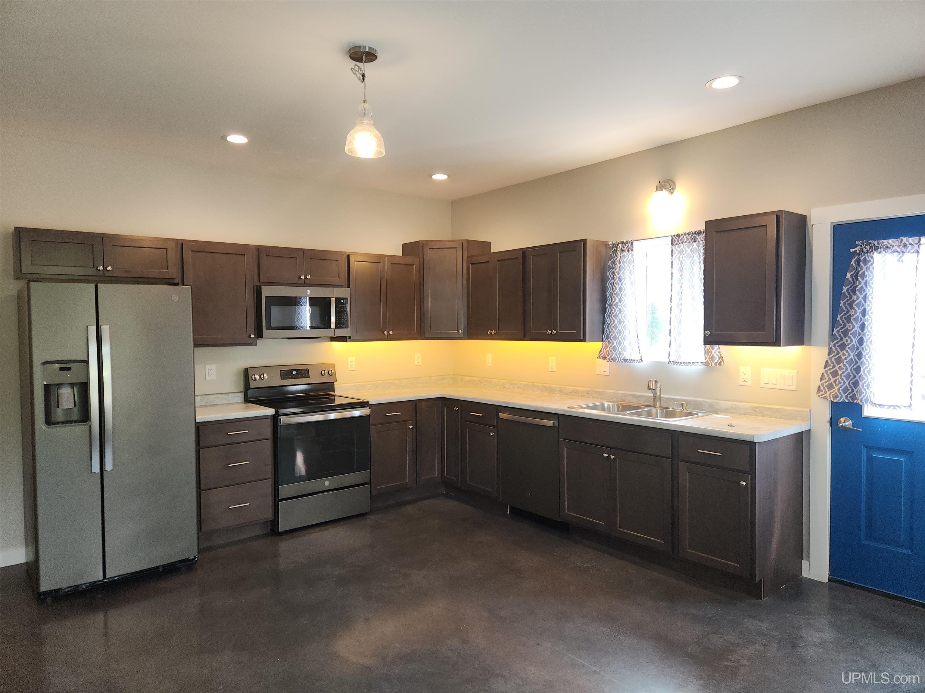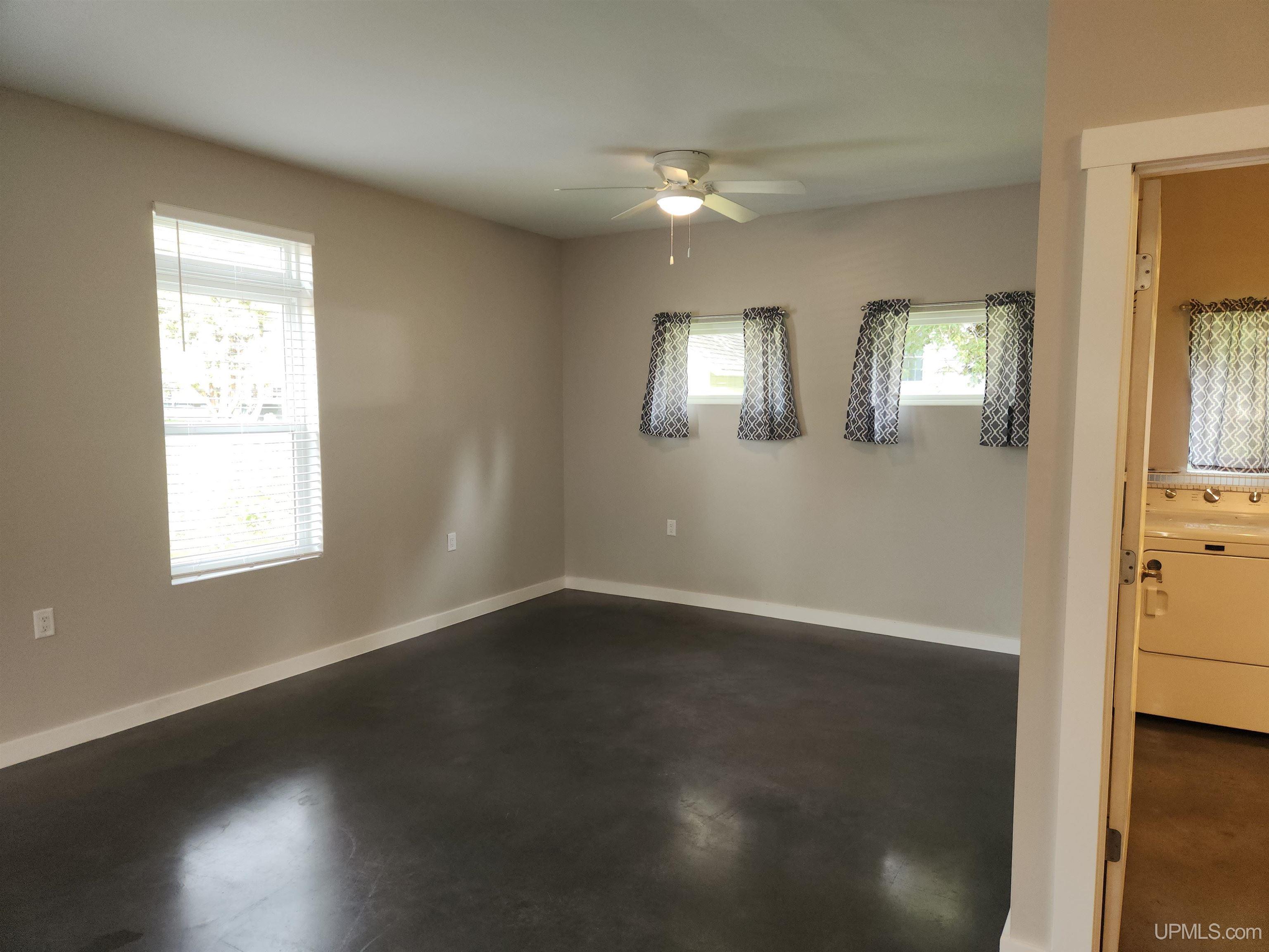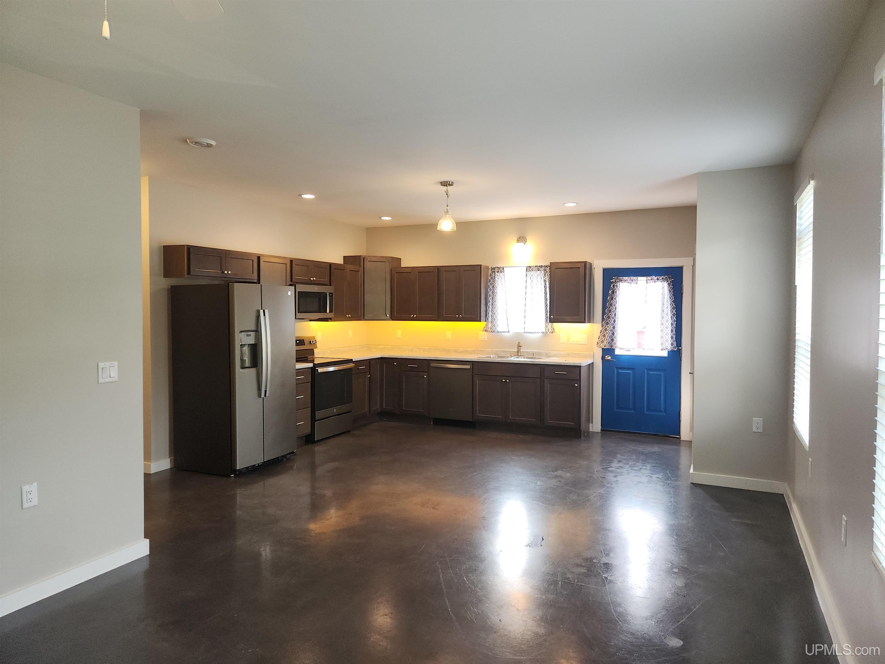 AVAILABLE NOW - FOR RENT - ATLANTIC MINE, MI - This 2 bedroom, 1 bathroom home has 1008+/- square feet of living space and includes a 1.5 car detached garage. The floor plan includes open kitchen, dining area and living room. Other features include 9' ceilings, washer, dryer, dishwasher, refrigerator, microwave, oven/range, polished concrete floors and walk-in shower. Rent is $1850 per month. 1 year lease required. Security Deposit: 1 1/2 months rent. Utilities included: Water/sewer (up to $100/mth total, tenant pays anything over $100/month), trash pickup & snow removal included. Tenant responsible for gas and electric. Landlord may consider a pet. Pet request must be presented with application. No smoking. Application required. NOTICE: All information believed accurate but not warranted. Tenant recommended to inspect & verify all aspects of the property & bares all risks for any inaccuracies including but not limited to estimated acreage, lot location/size, square footage, utilities (availability & costs associated). APPLICATIONS: Landlord at landlord's sole discretion, with or without notice, reserves the right to set and/or modify application submission & response deadlines.