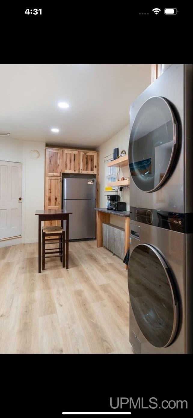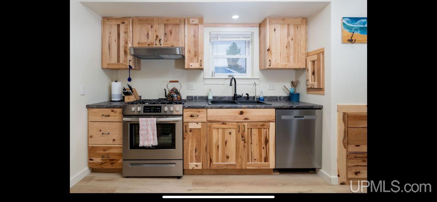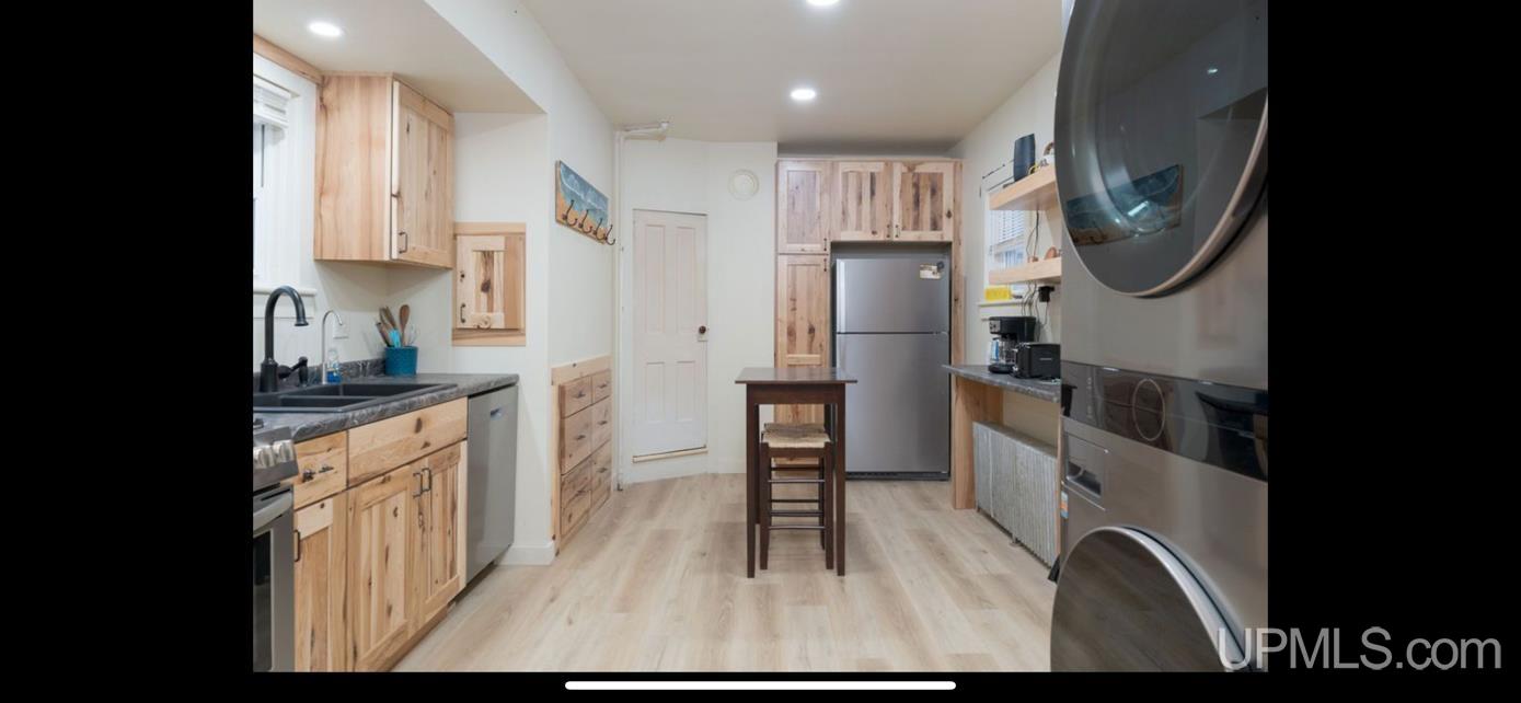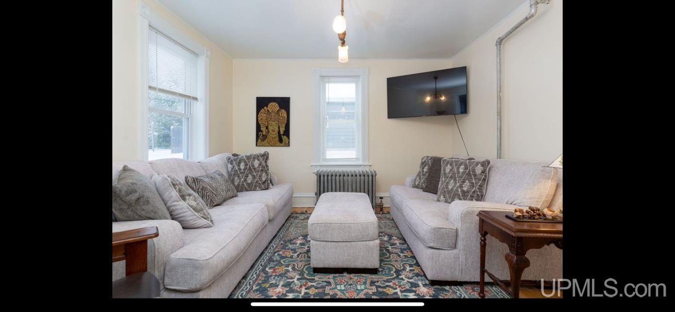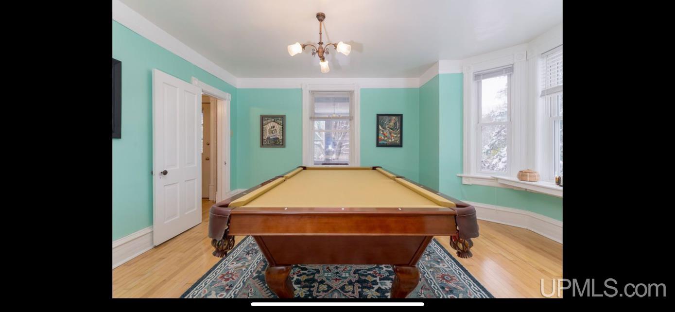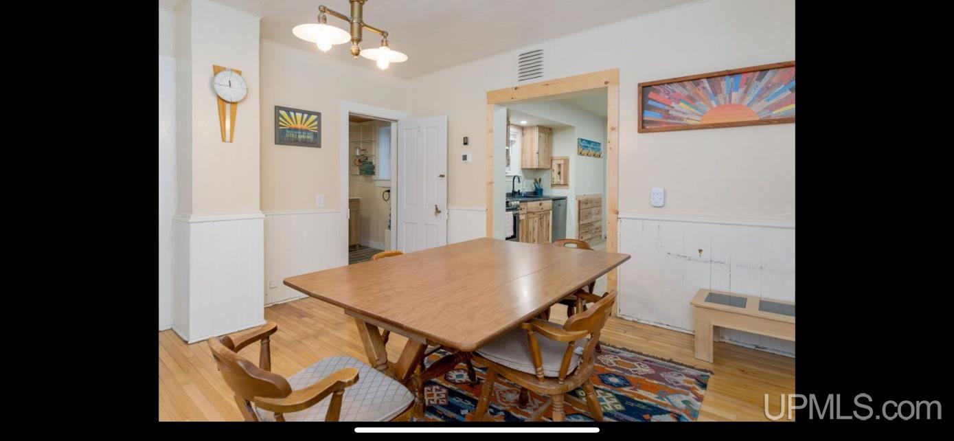 Spacious historic Calumet home with great curb appeal and a wraparound porch. Updates include roof, siding, and a 26x30 detached garage. Features a fully remodeled kitchen with quality wood cabinetry, hardwood floors, and updated windows. Main level has a parlor, dining room, and full bath. Upstairs offers four bedrooms, a second bath, and front and rear stairways. A nice blend of historic charm and practical updates near schools, parks, and downtown.